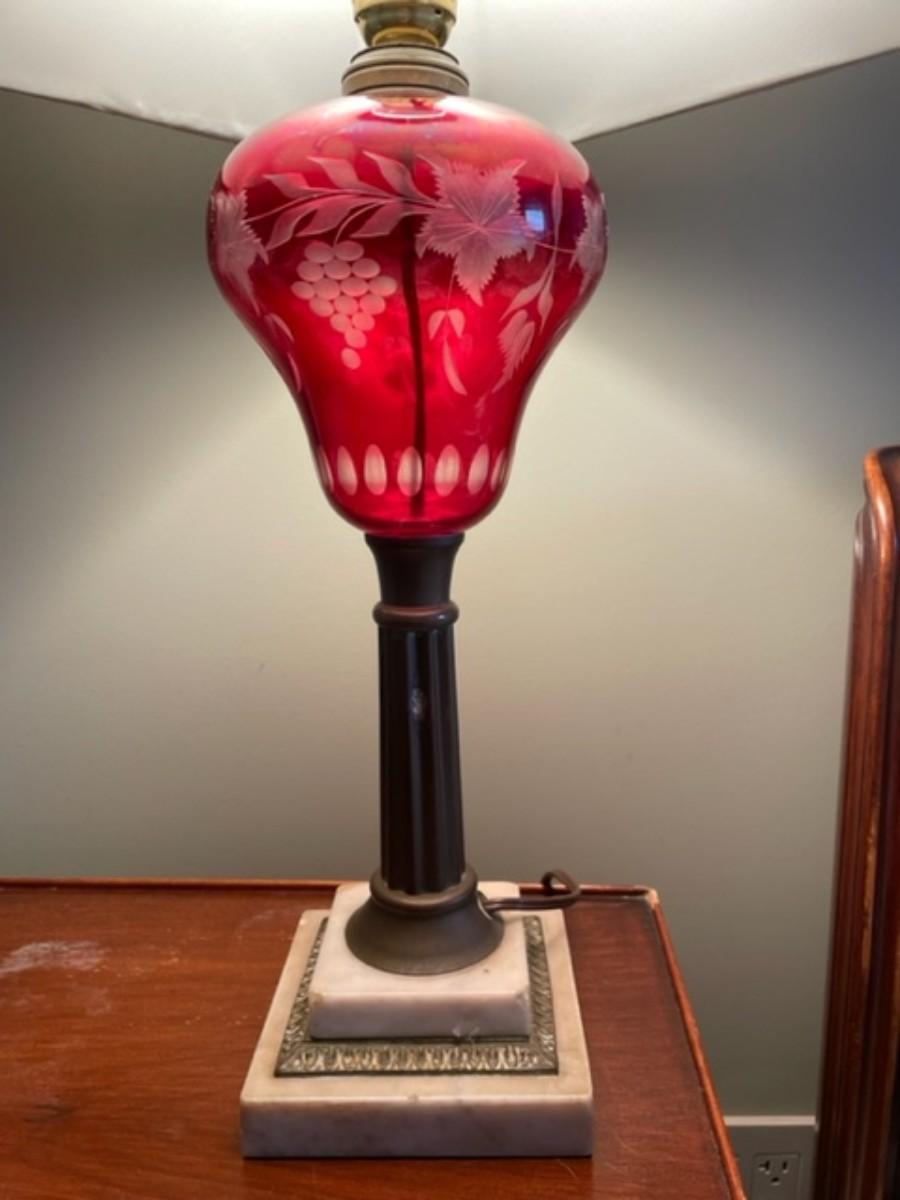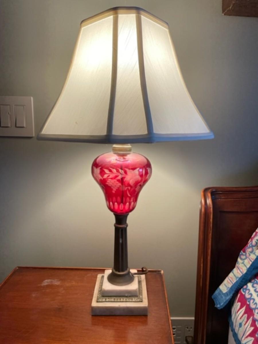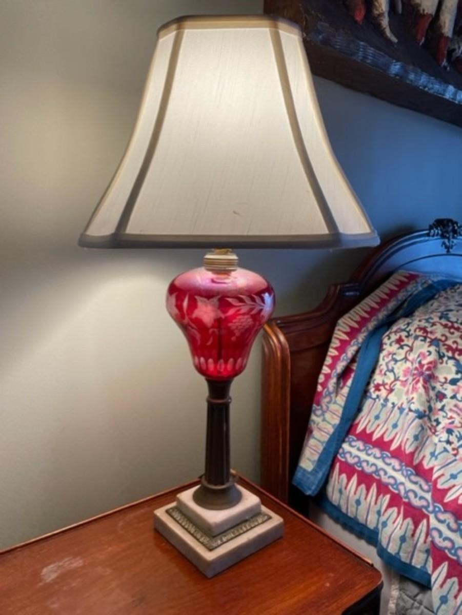 Cranberry / Raspberry Glass Vintage Lamp w/marble base c. 1930's