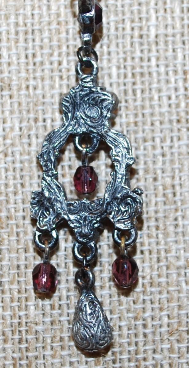 Cranberry Red Dangle Stones Necklace on a Dark Silver Tone Chain 18" L
