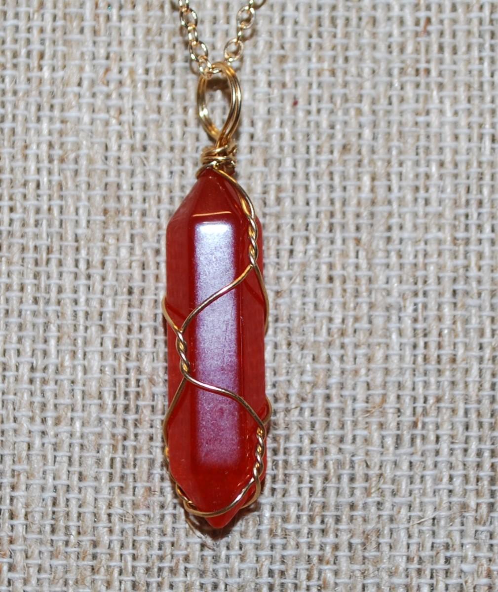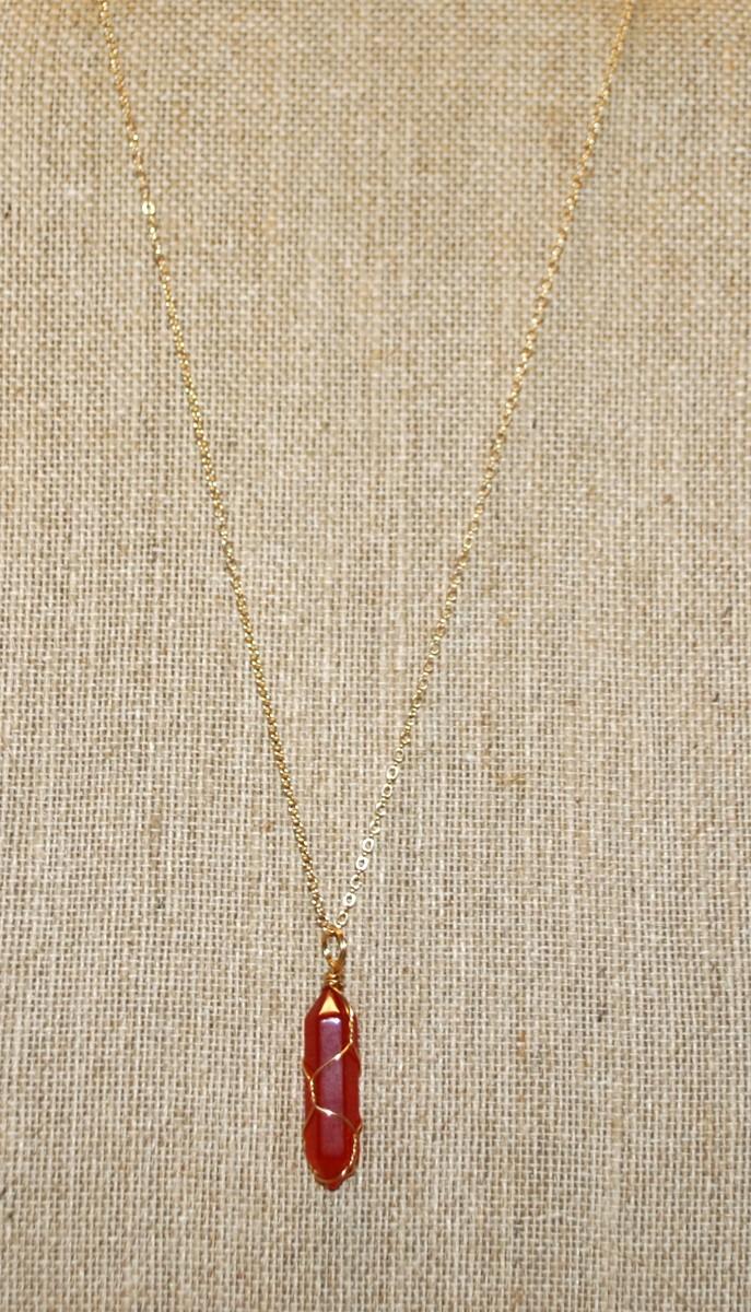 Cranberry Red Long Prism PENDANT (1½" x ½") on a Gold Tone Necklace Chain 18" L