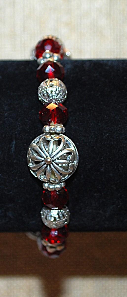 Cranberry RED PRISM Beads BRACELET (2¼" Opening) with an Assortment of Metal Bead Accents