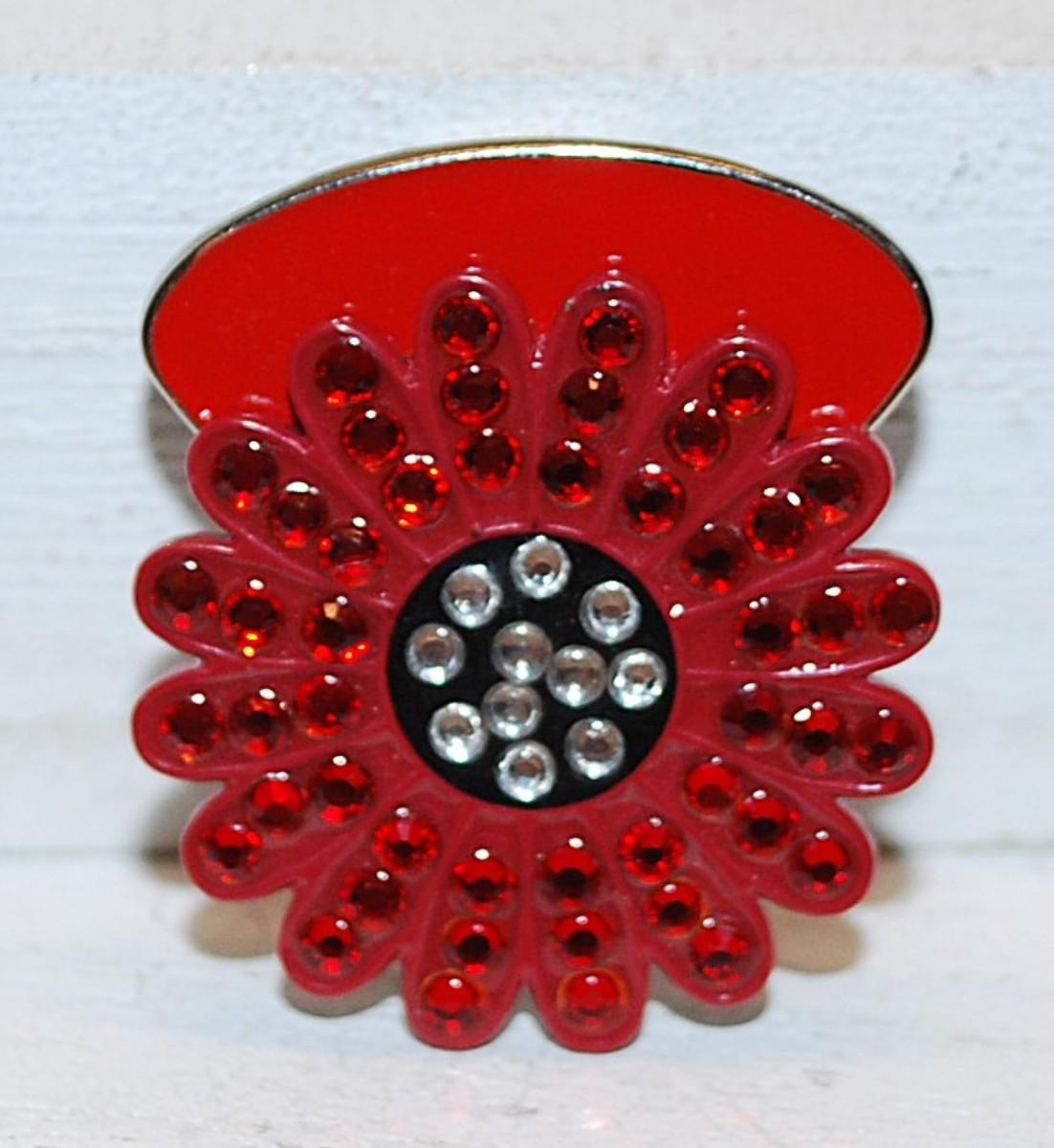 Cranberry RED SHOE CLIP (1")- Marked "Navika" with a Silver Tone Setting