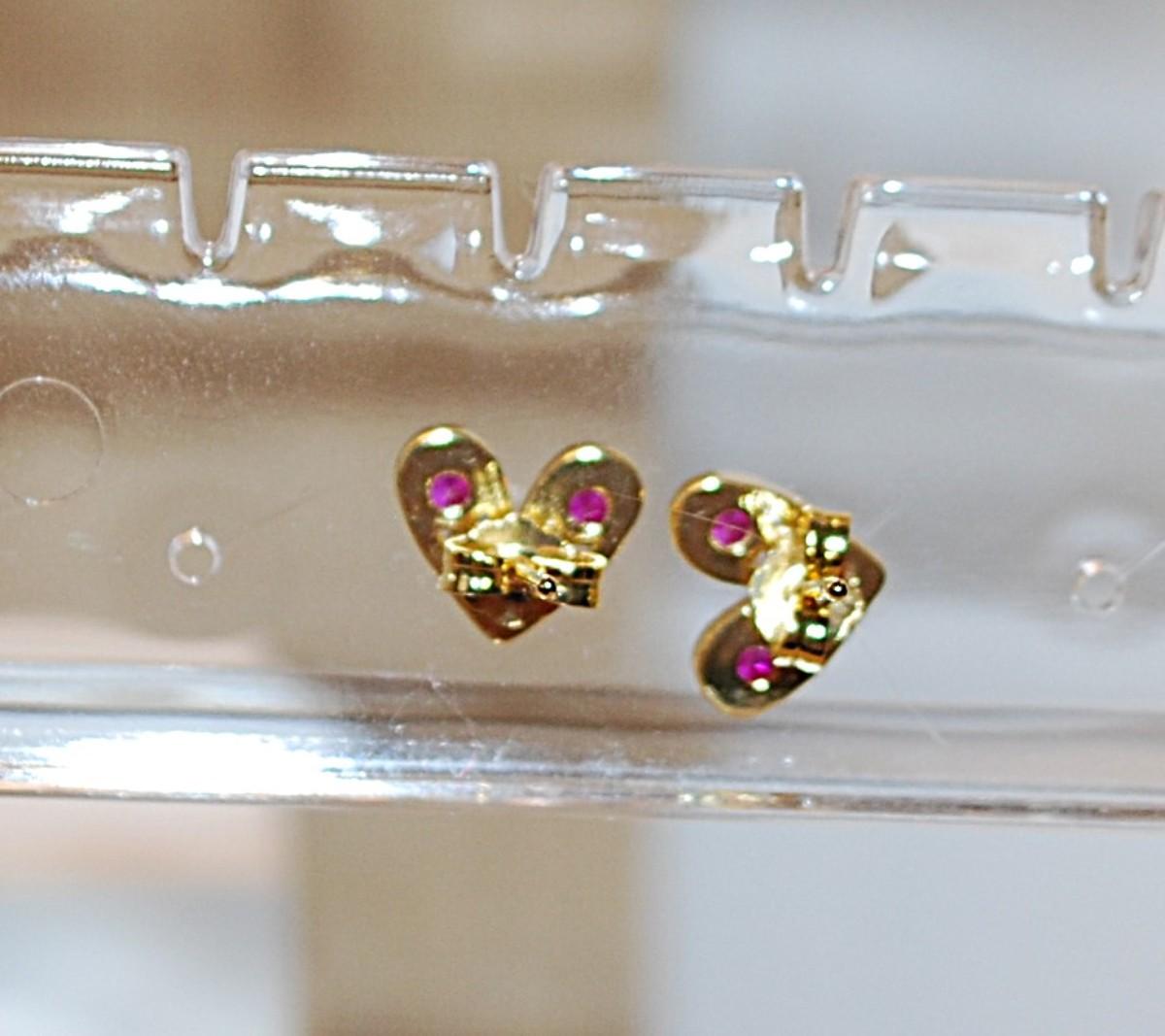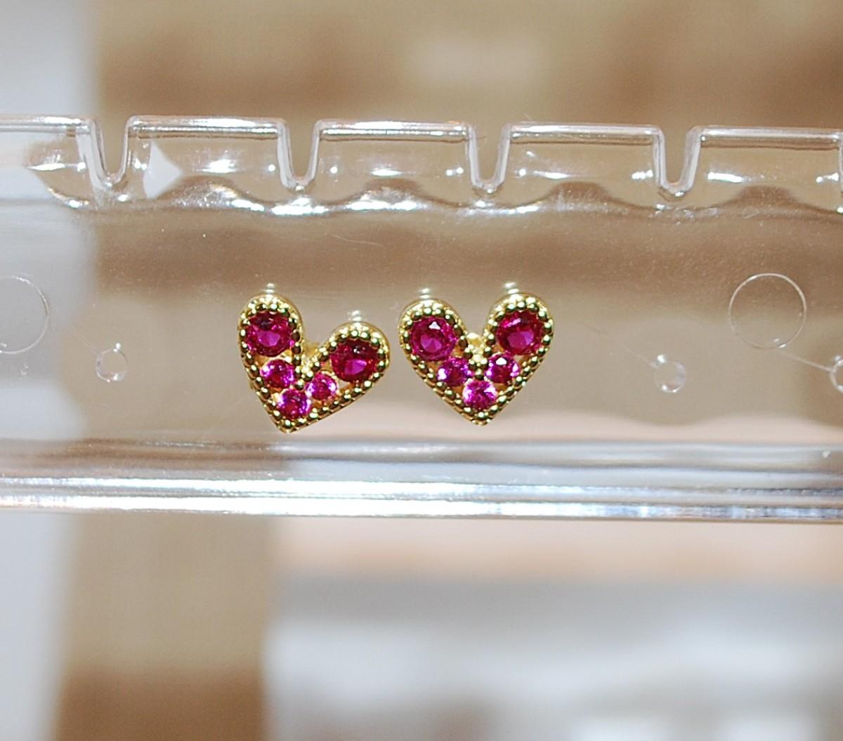 Cranberry Red Stones HEART Earrings (½" x ½") on a Gold Tone Stud Clasp
