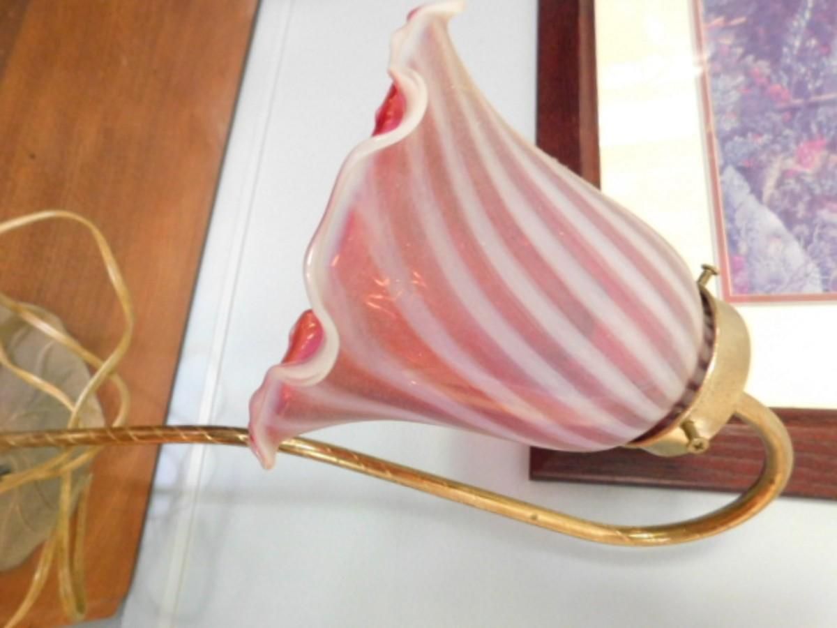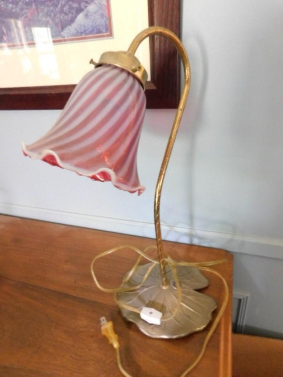 Cranberry White Strip Flower Shade Gooseneck Lamp Choice A  (L18b)