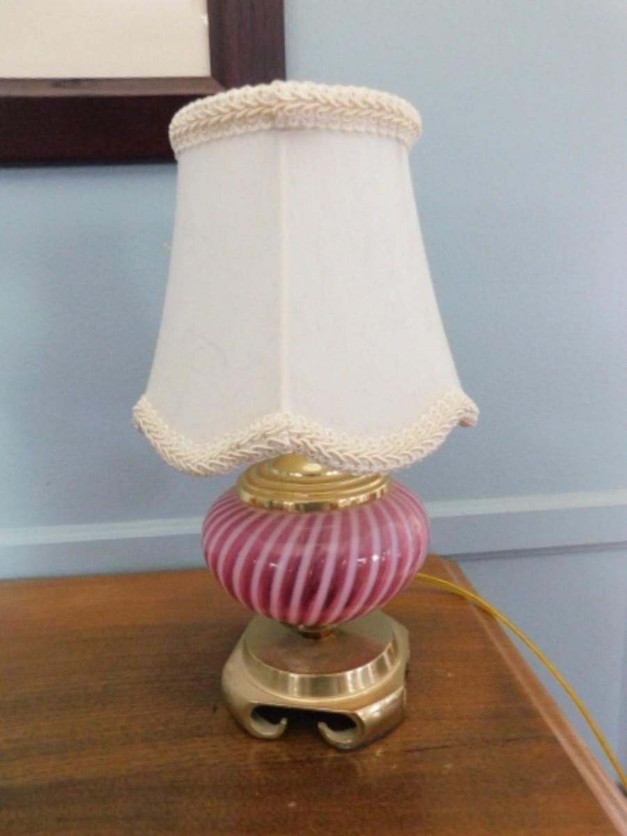 Cranberry White Stripe Swirl Belly Glass Table Lamp   (L12)