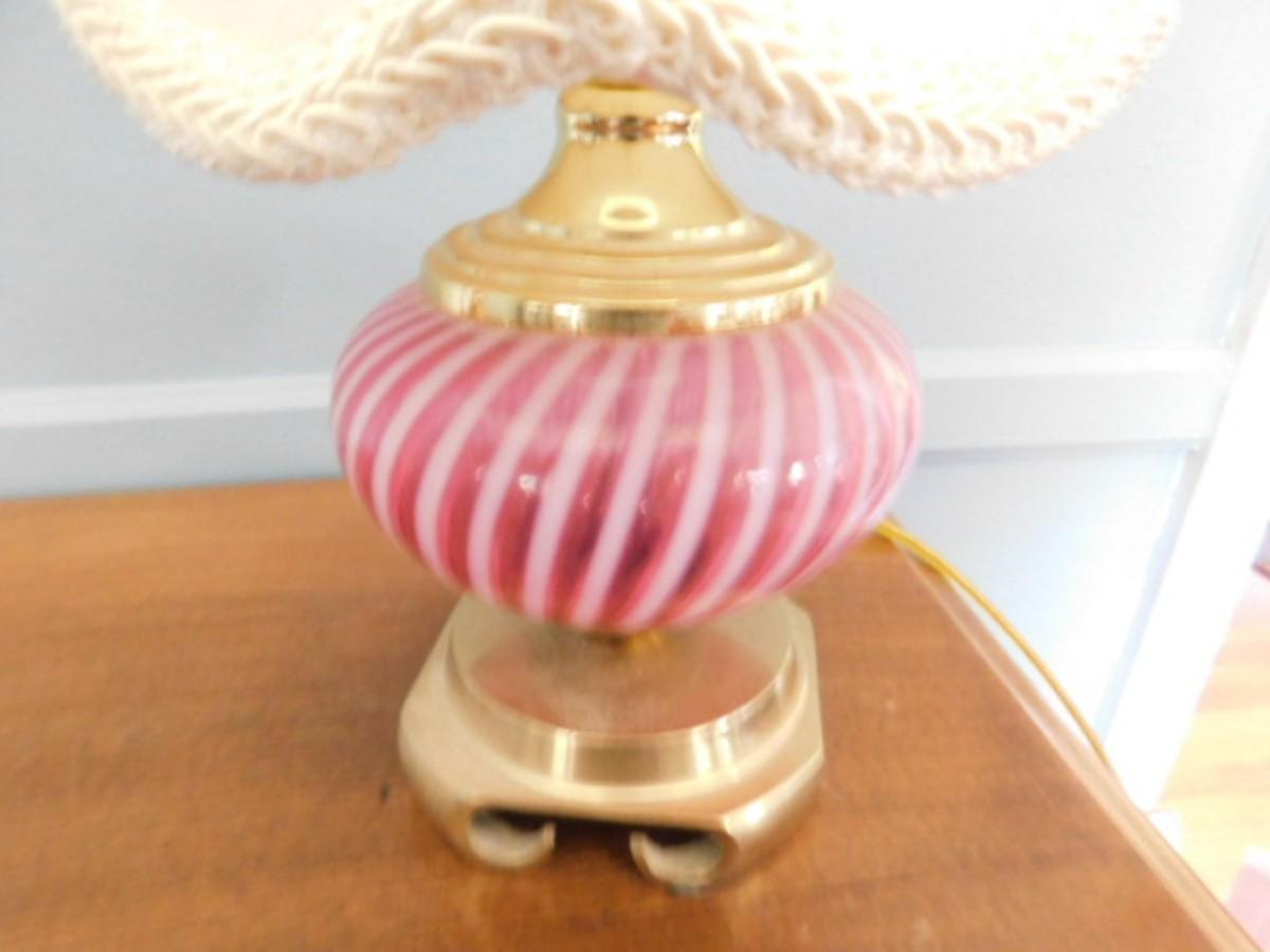 Cranberry White Stripe Swirl Belly Glass Table Lamp