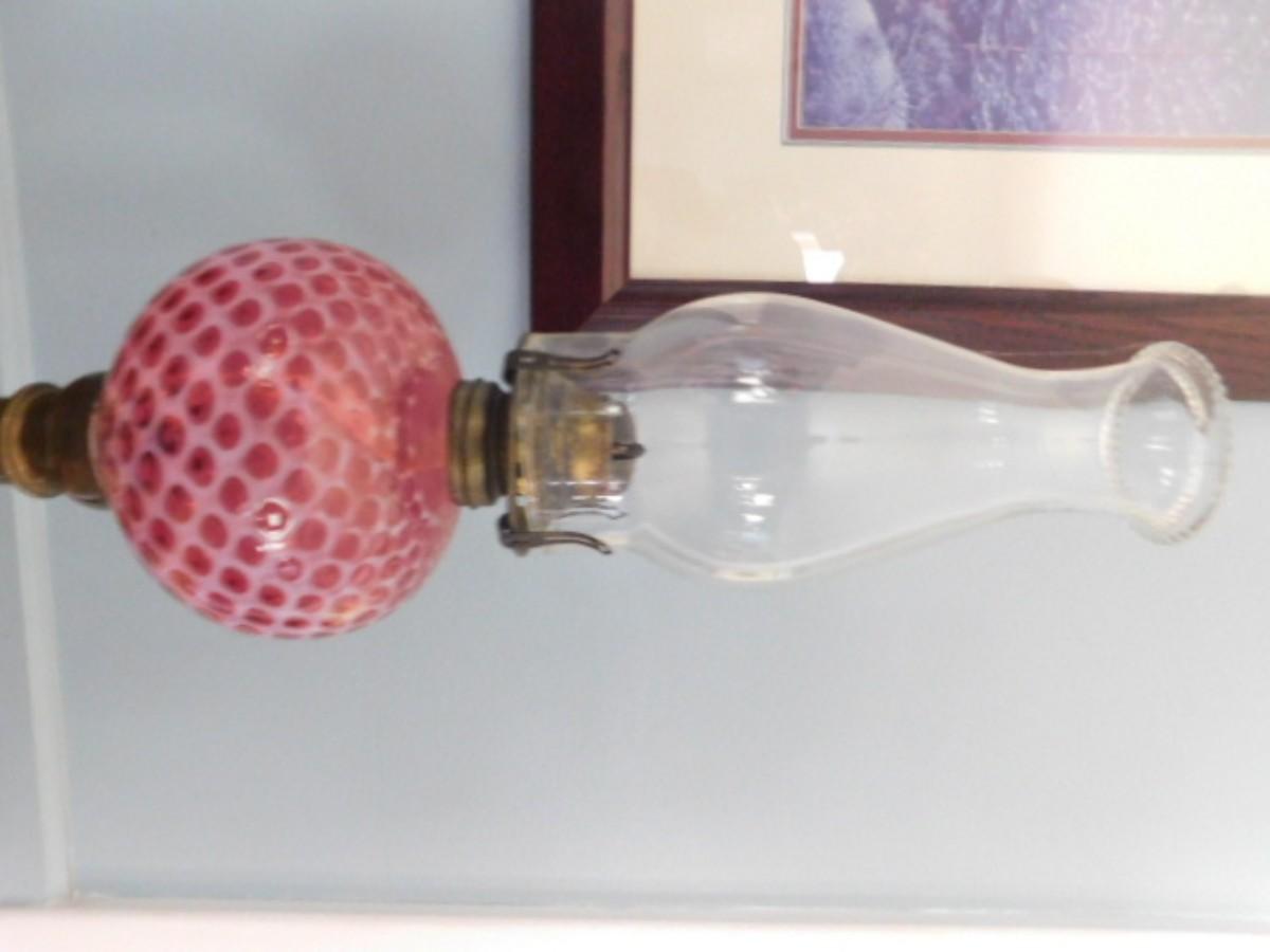 Cranberry with White Patterned Glass Post Lamp with Chimney Choice A   (L10a)