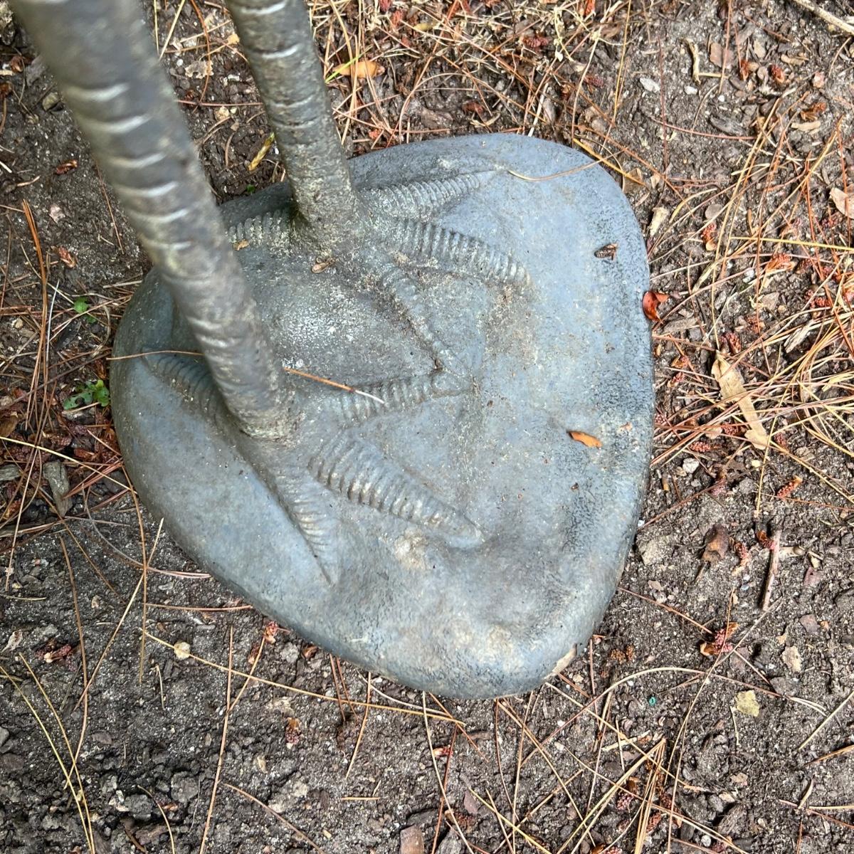 Of these seven crane statues, the four larger ones are metal and measure 8” x 7” x 31”H. The three smaller ones are a hard resin like material and all have some wear on their finish, see images.