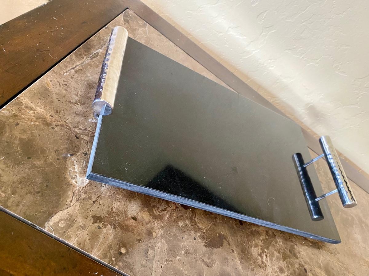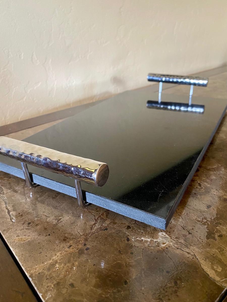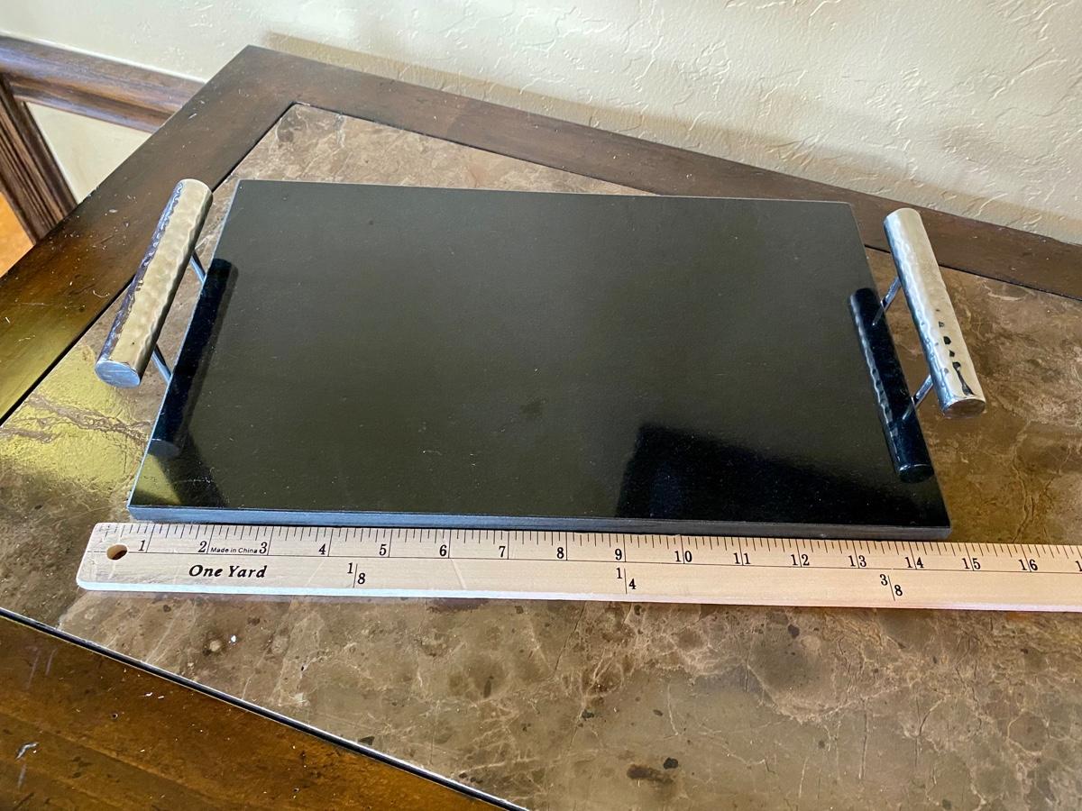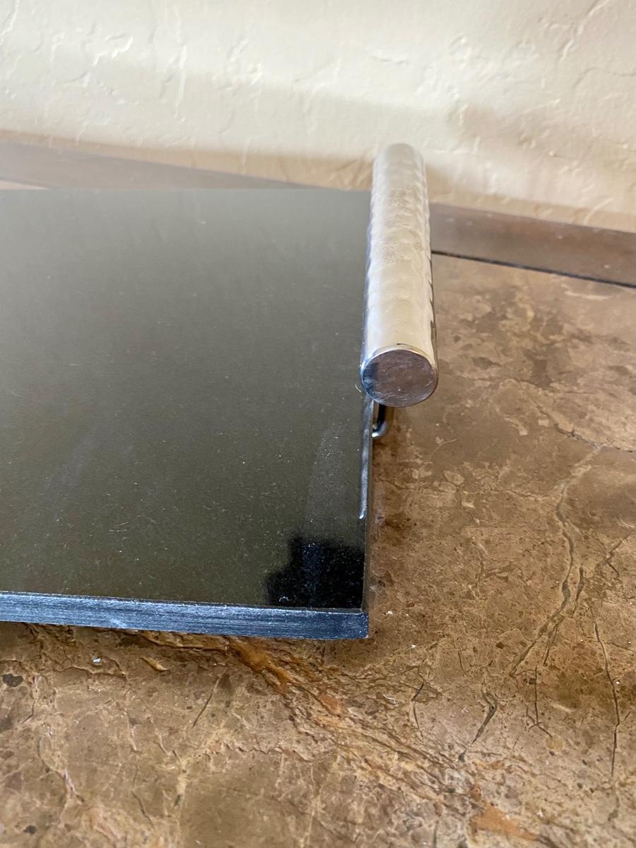 Crate and Barrel Marble Serving Tray with Silver Handles
