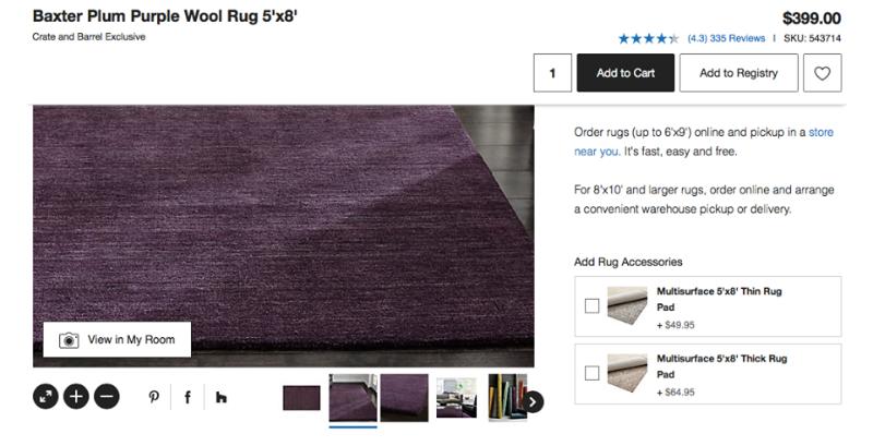 CRATE & BARREL BAXTER WOOL RUG - PURPLE