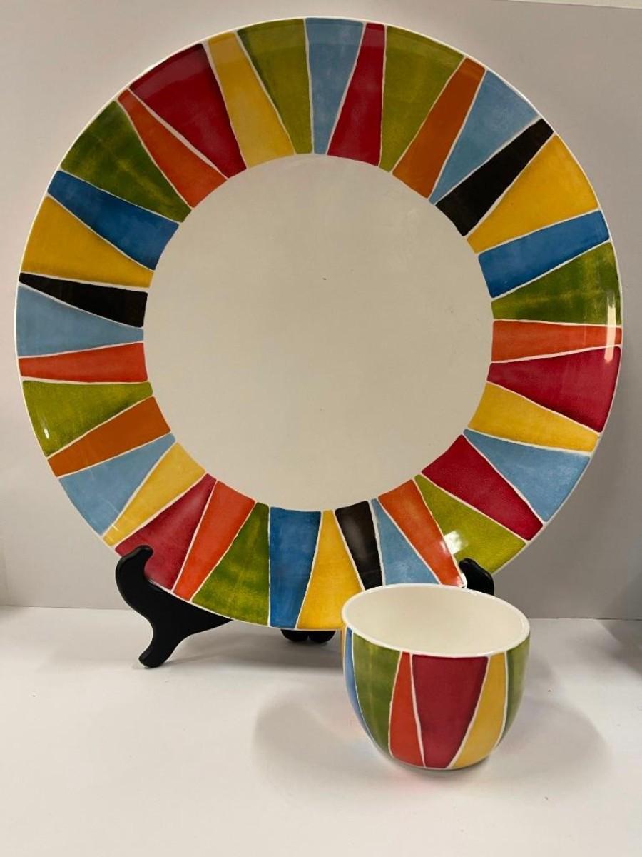 Crate & Barrel Luli Sanchez Large Round Charger & Matching Bowl.