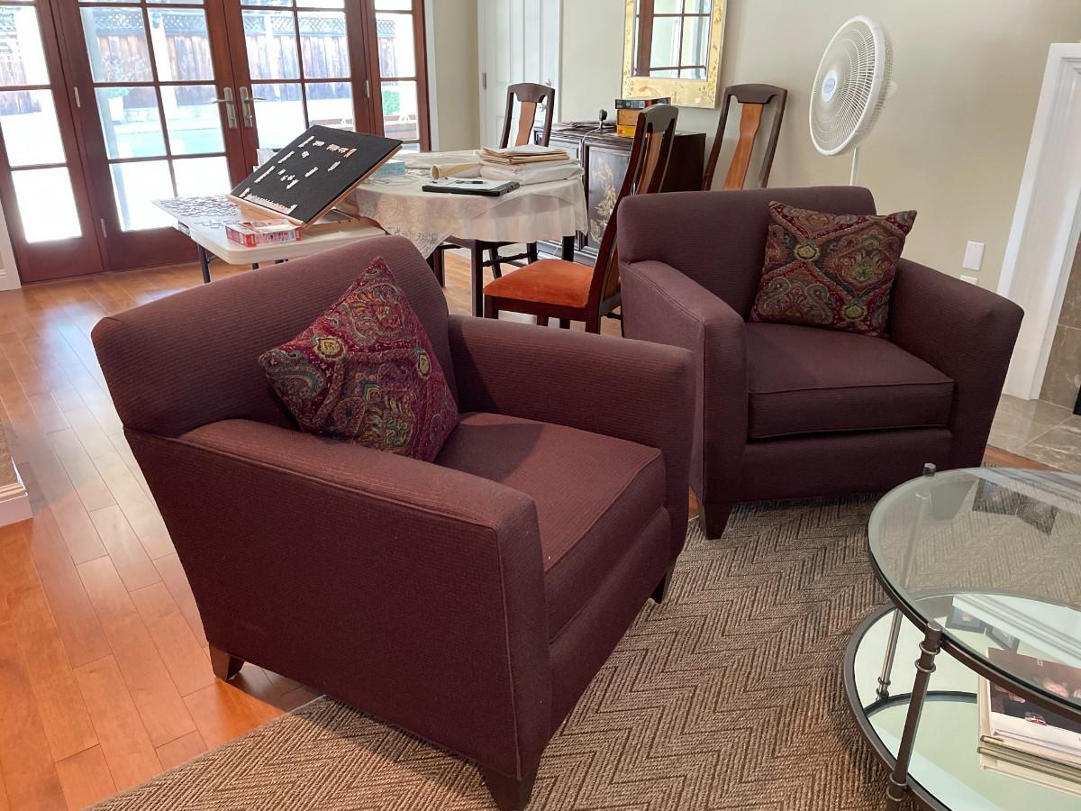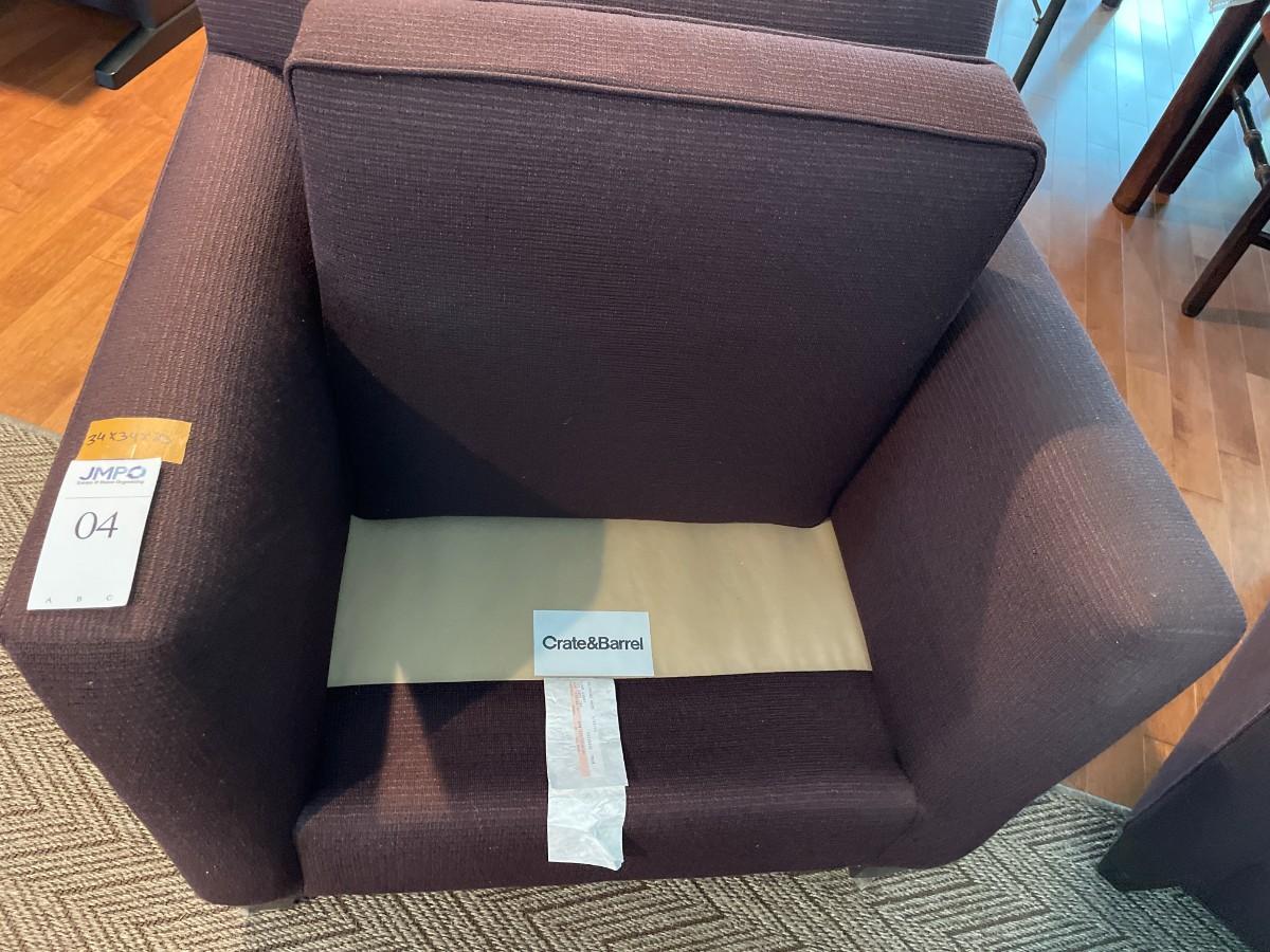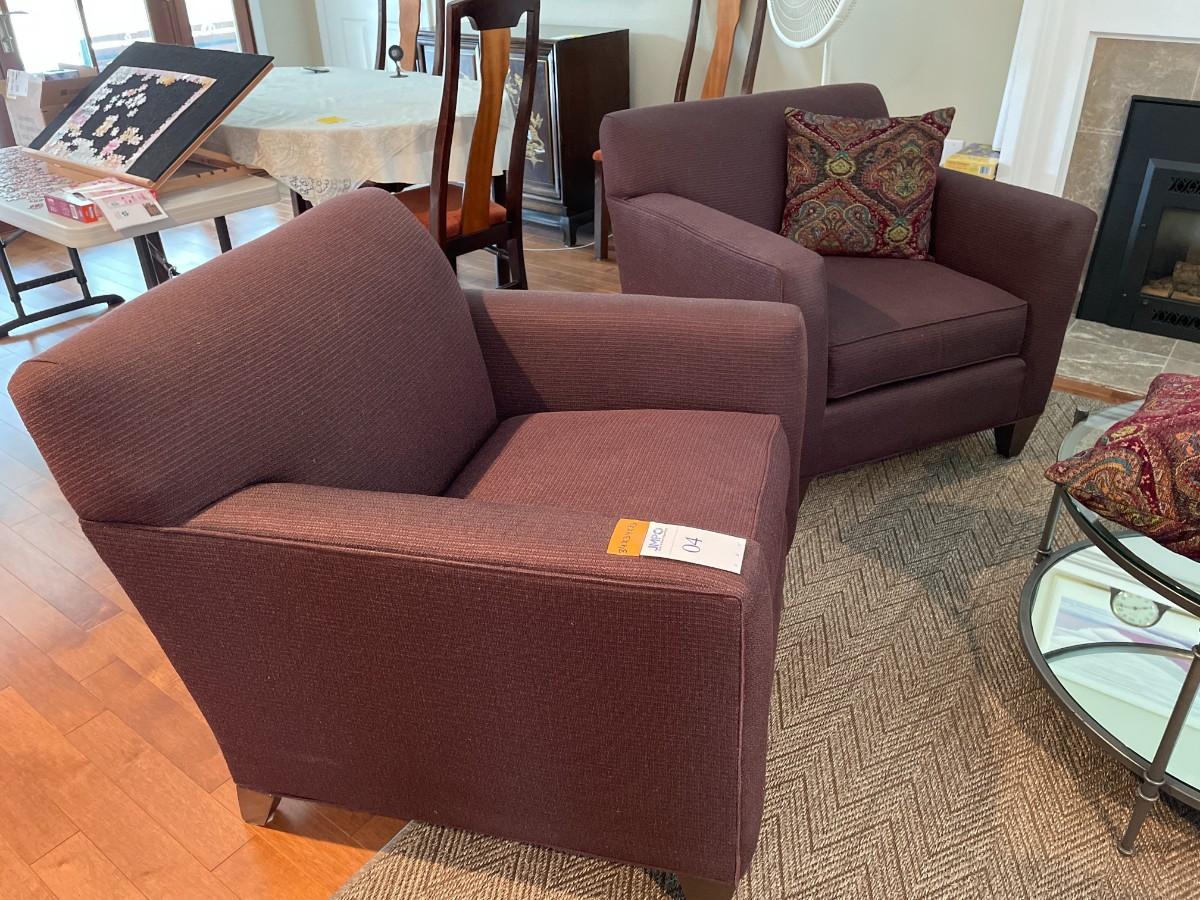 Chairs match sofa in Lot 3. Color dark purple, includes 2 pillows, 34x34x33