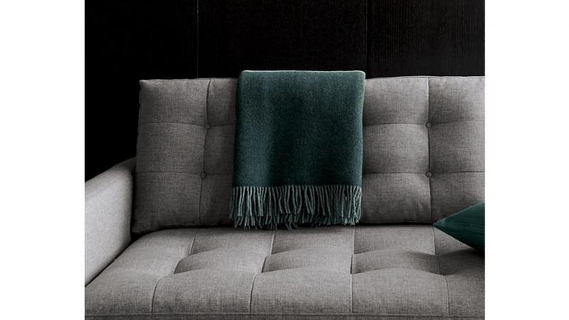 Petrie is a distinct living room sofa that sits at the intersection of mid-century and today, with clean lines and tailored cushions expertly button-tufted by hand. Now a Crate and Barrel classic, its pure 1960s aesthetic is scaled deep so you can sit firm and upright, but also slouch back in comfort. Well-suited to make a great impression, the menswear-inspired fabric tailors Petrie's sleek, boxy cushions and slim track arms with heathered color and soft texture. Petrie Midcentury Sofa is a Crate and Barrel exclusive.