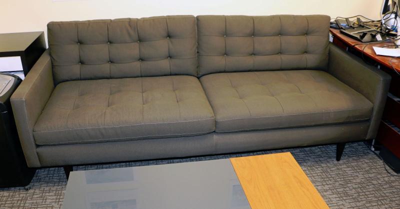 Pre-owned Petrie Midcentury Sofa by Crate & Barrel, shows light use wear but overall in very good/near excellent condition. (Retail $1,899.00) - you can get it here at the fraction of the retail price.