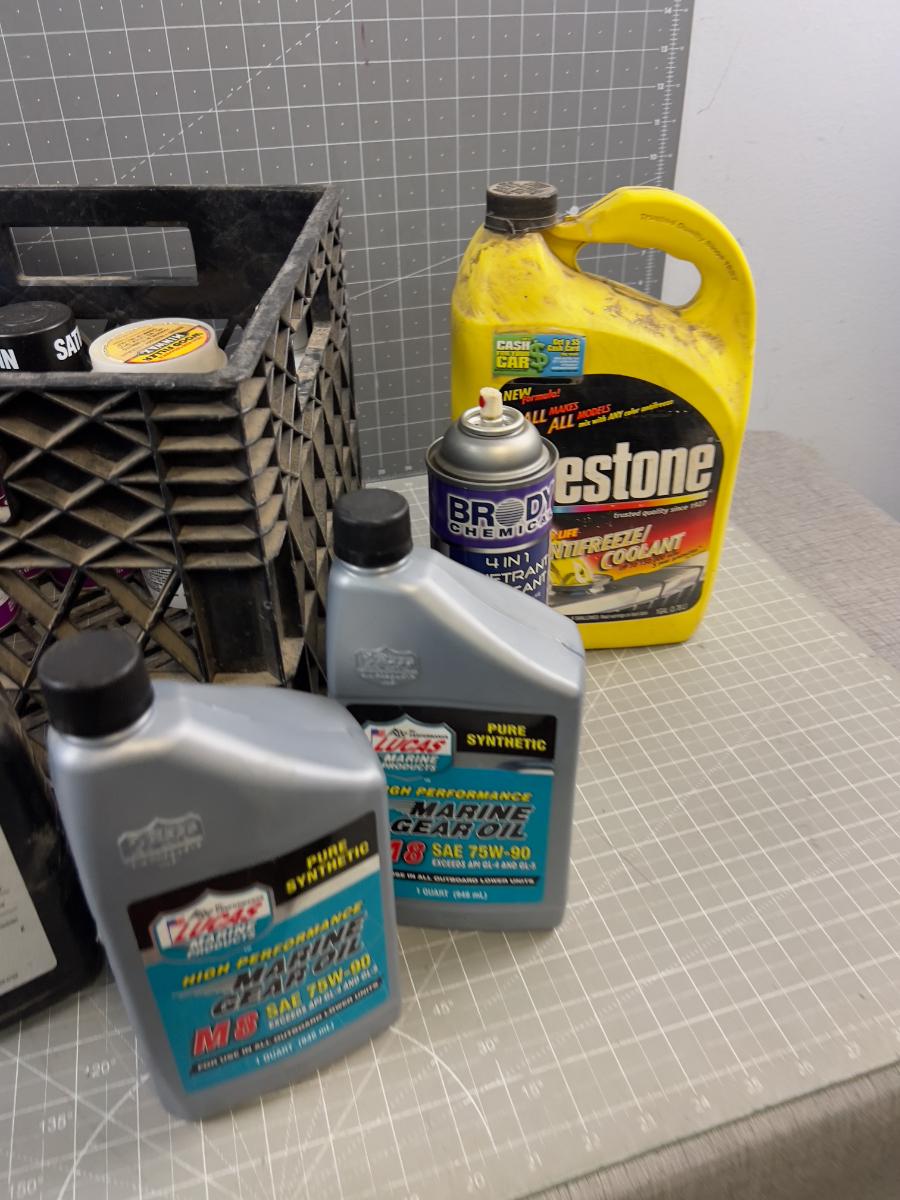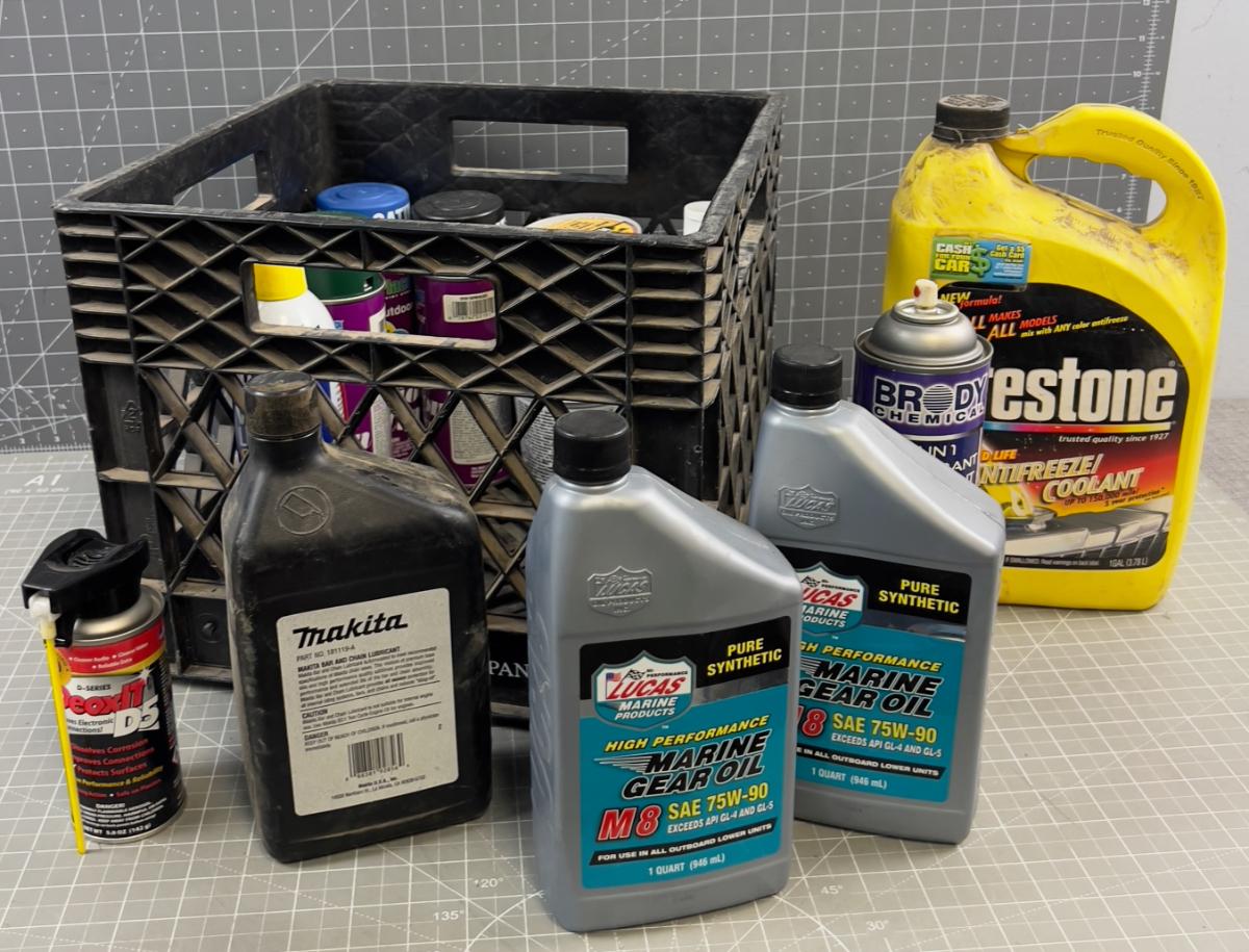Crate full of Garage Fluids