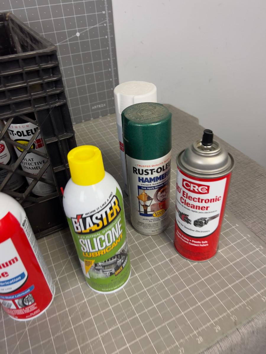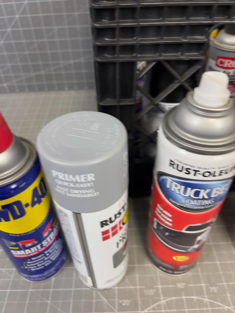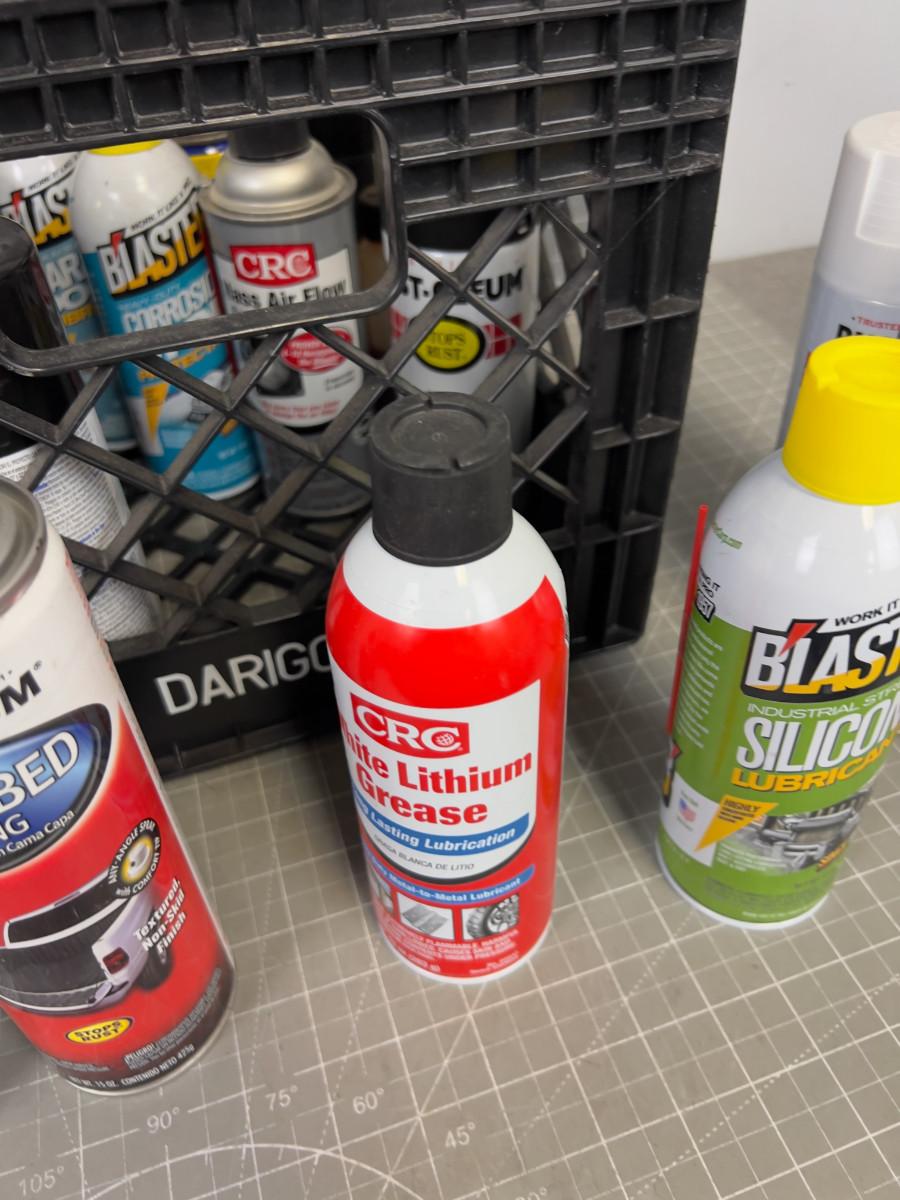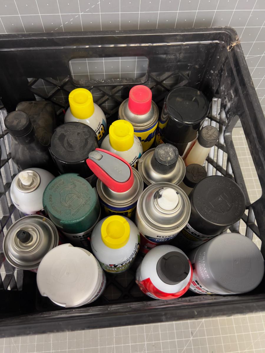 Crate full of Garage Products; Paints, Lubricants, Oils