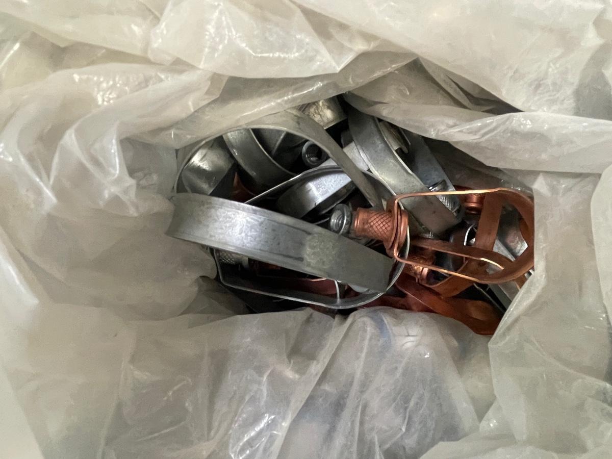 Crate of metal clamps