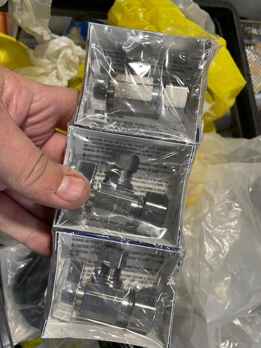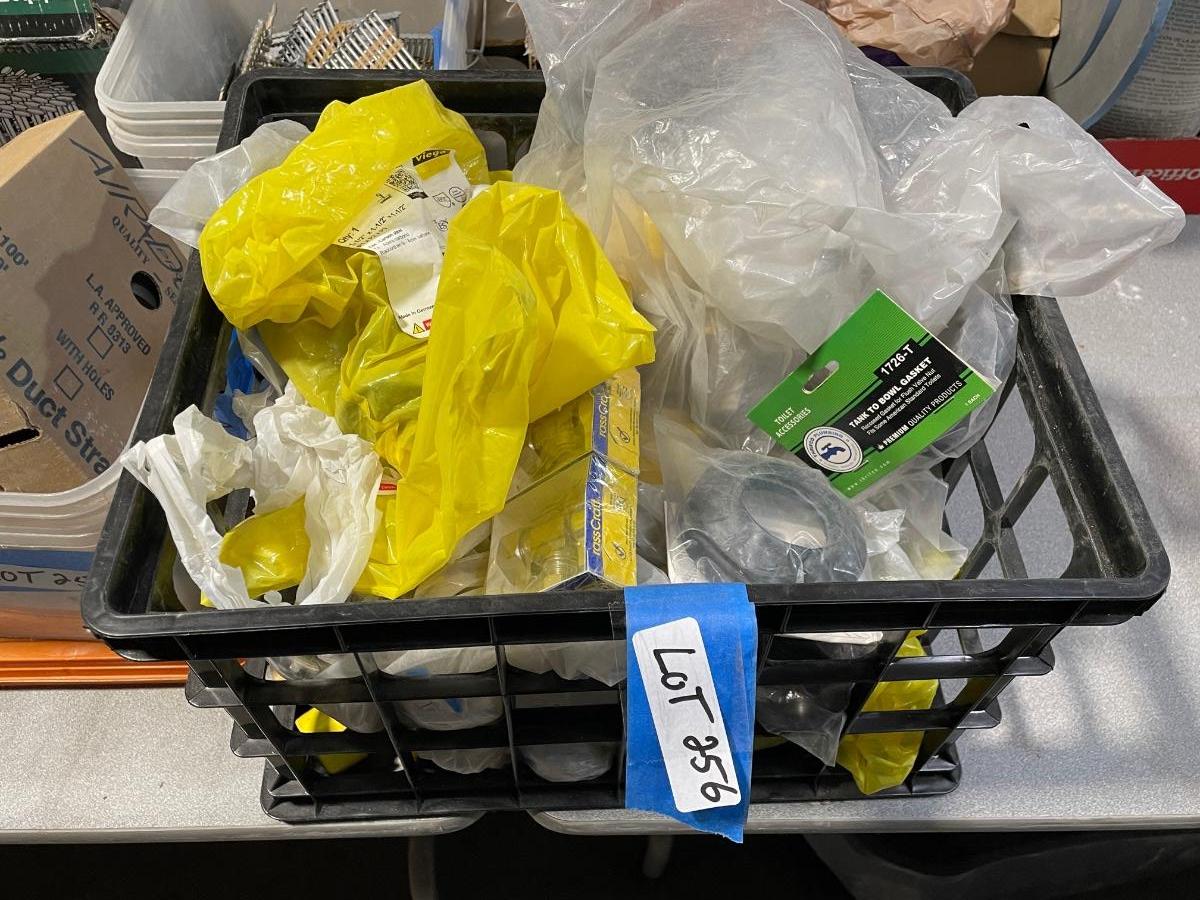 Crate of misc. plumbing fixtures - valves, brass connectors pieces