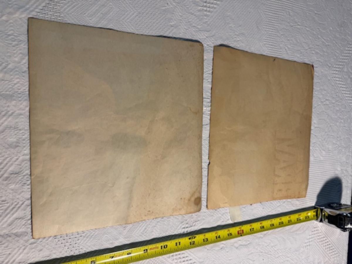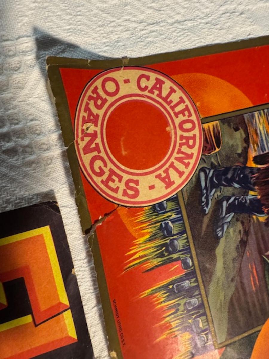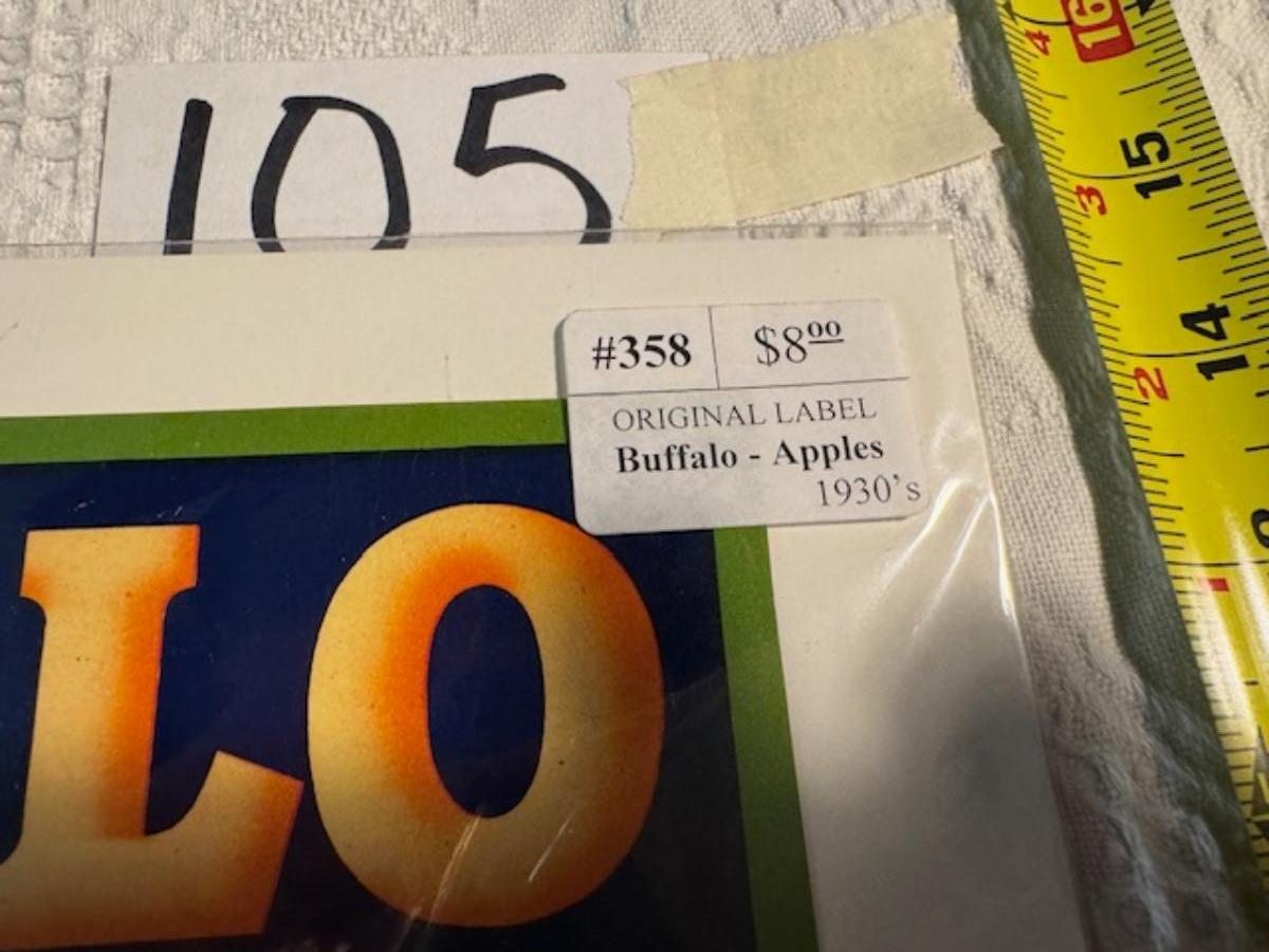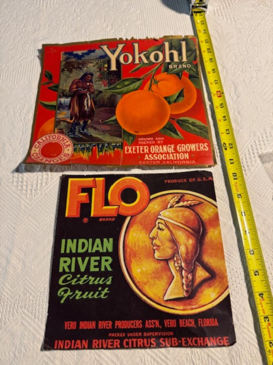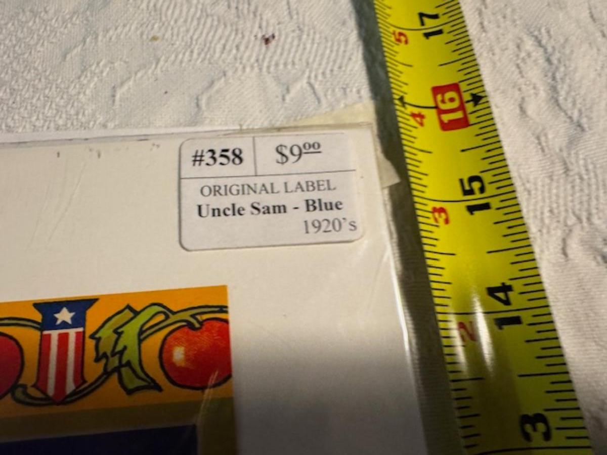 Crate metal and wood Sanitary Dairy Woodland 15" x 12 1/4" x 10", Crate metal and wood 18.5" x 13.5" x 10 1/4". 7 authentic labels (see back of label) new, 12 vintage advertisements as found.