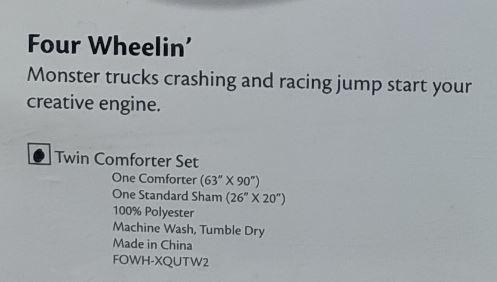 Crayola Four Wheelin' Monster Truck Twin Comforter Set, COmforter & Sham - New