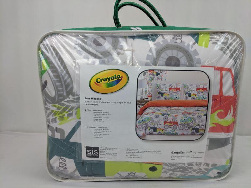 Crayola Four Wheelin' Monster Truck  Twin Comforter Set, COmforter & Sham - New