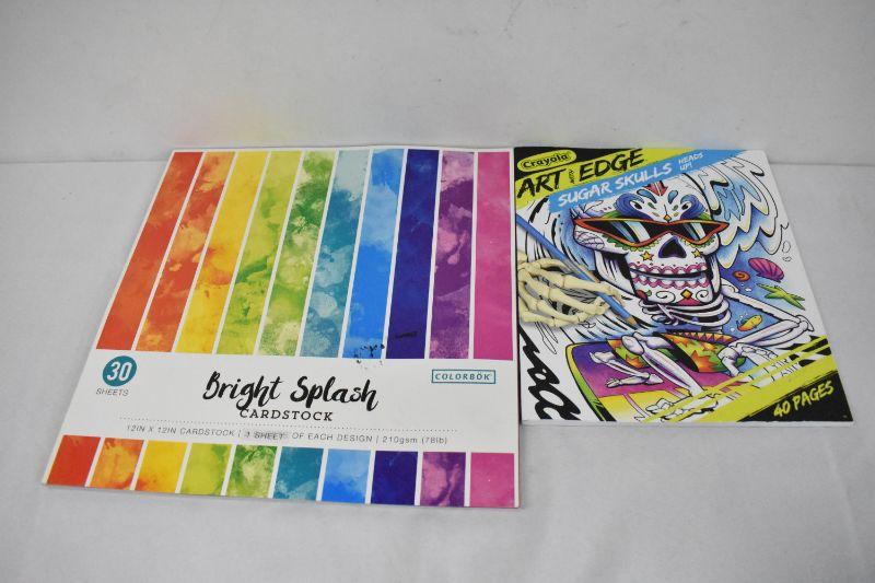 Crayola Sugar Skull Coloring Book & Bright Splash Cardstock 12x12 - New