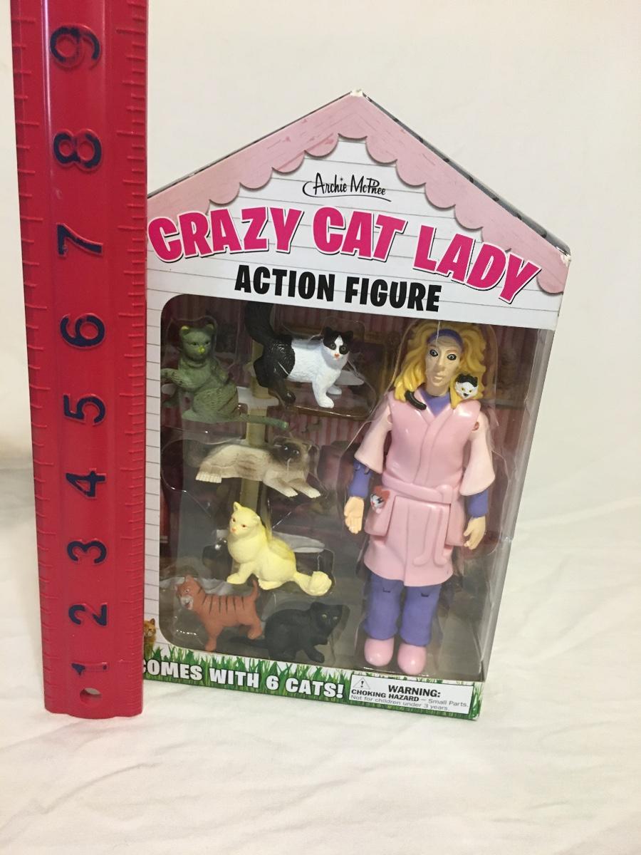 Crazy Cat Lady Action Figure Archie McPhee Includes 6 Cats Accoutrements