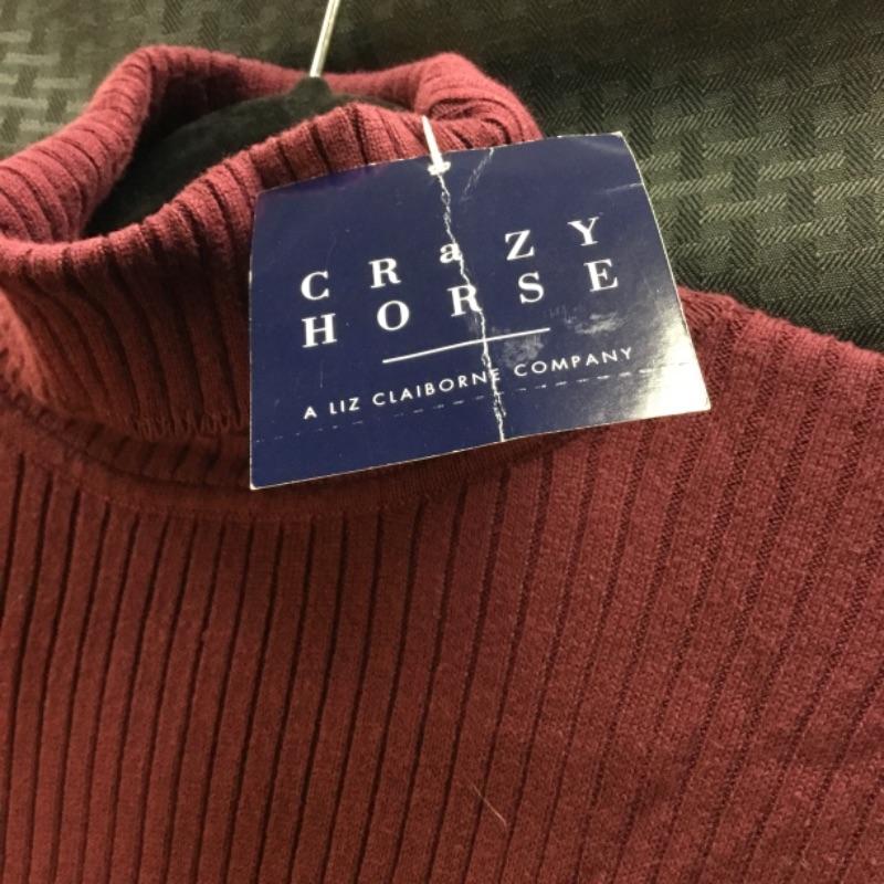 Crazy Horse by Liz Claiborne Ladies XL Turtleneck Up for auction is a burgundy turtleneck from the Crazyhorse line by Liz Claiborne. The material is 100% cotton. Sweater is brand new with its original tags still attached.