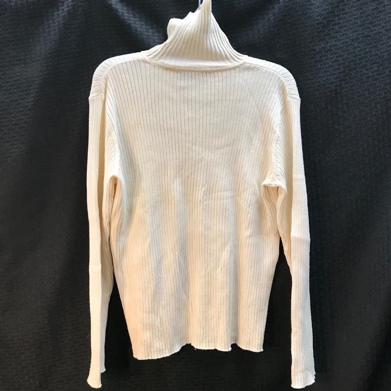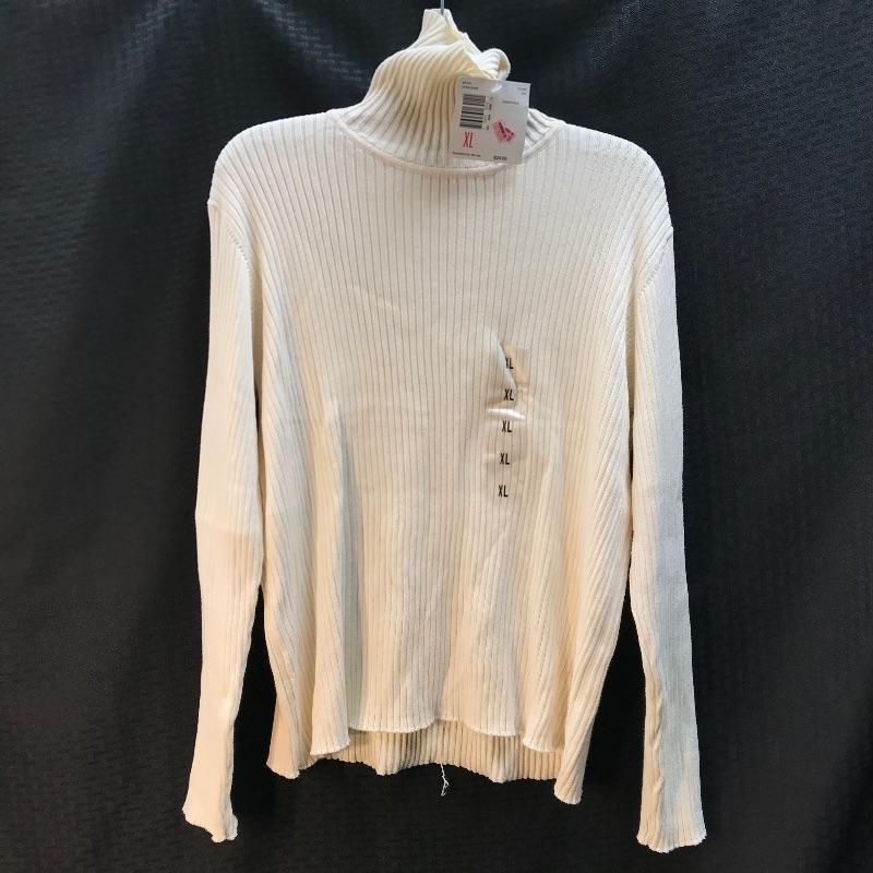 A ladies ribbed turtleneck in 100% cotton made by Liz Claiborne. It’s brand new with the original tags; see pictures.