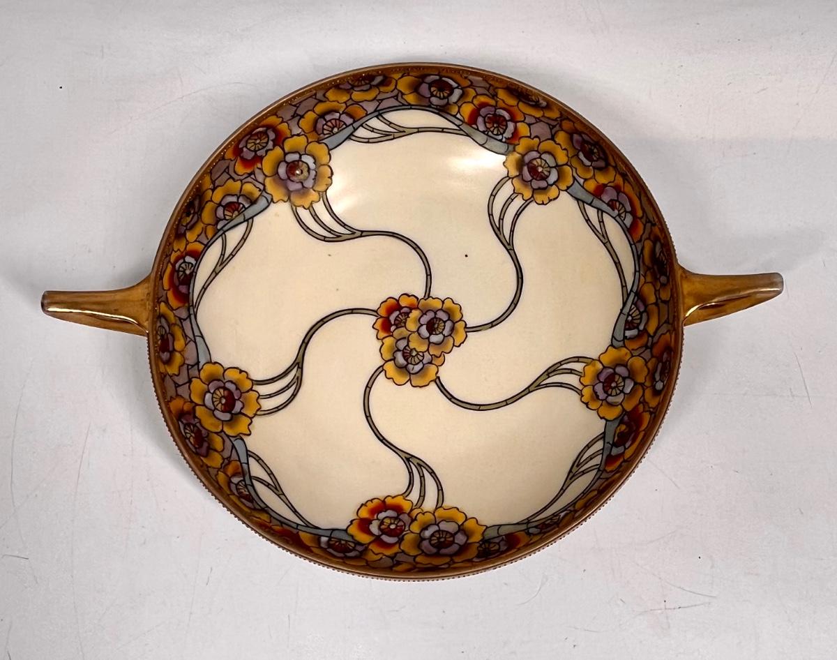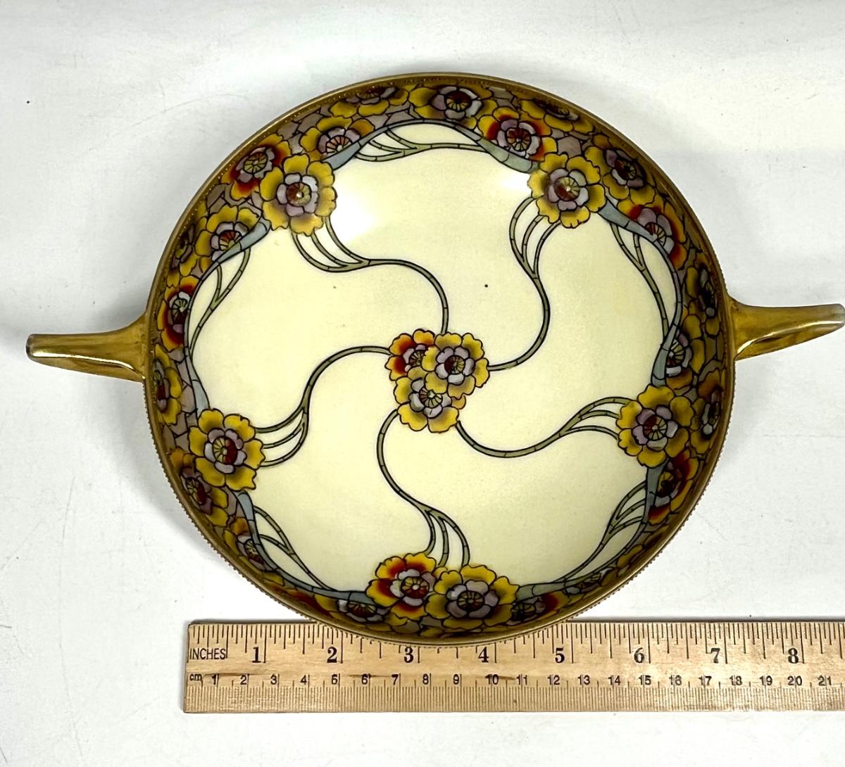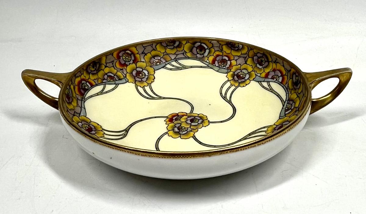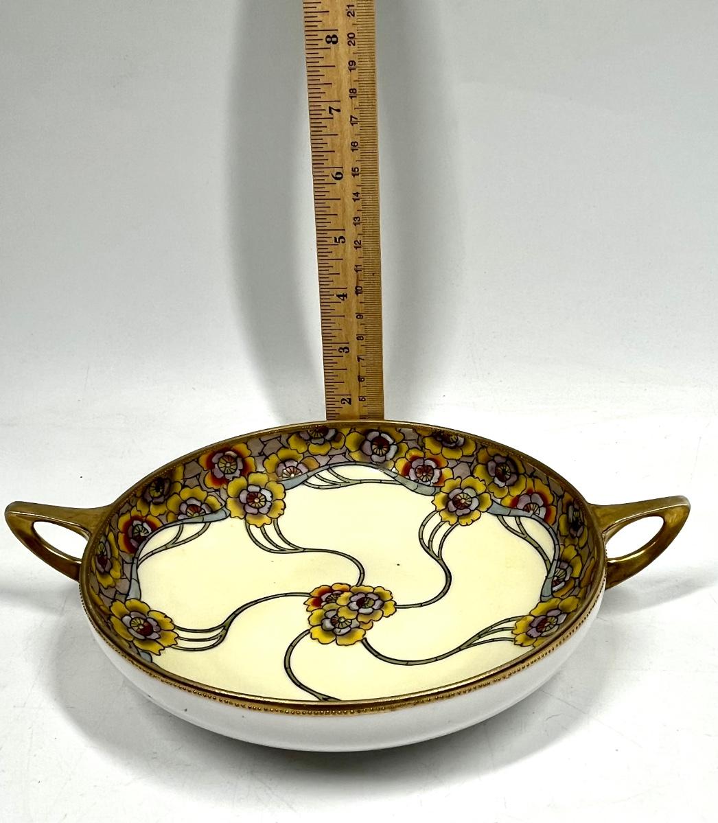 Vintage Hand Painted Nippon porcelain Yellow Floral Double Handled Serving Bowl