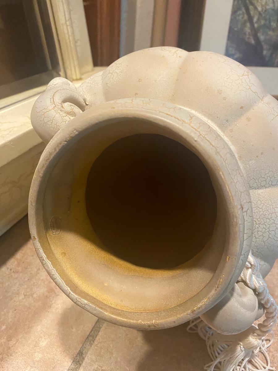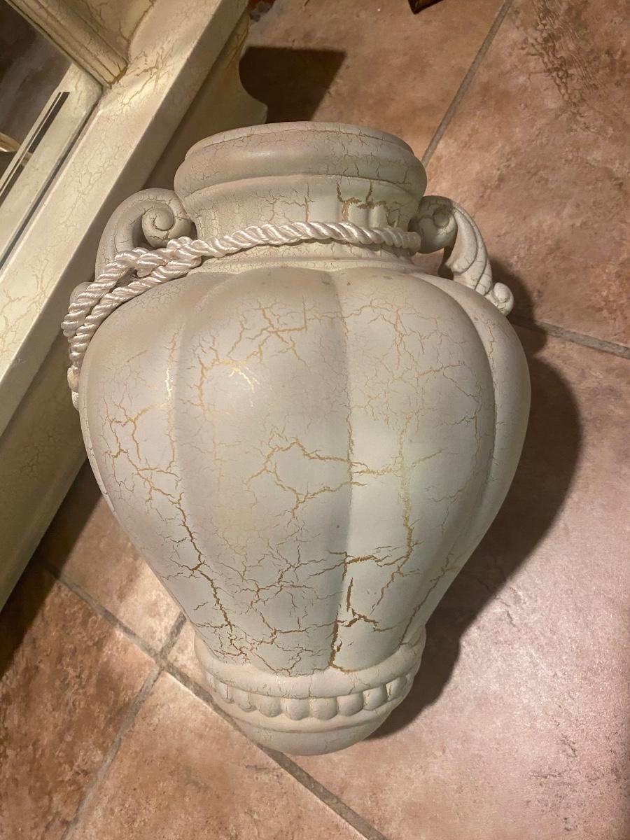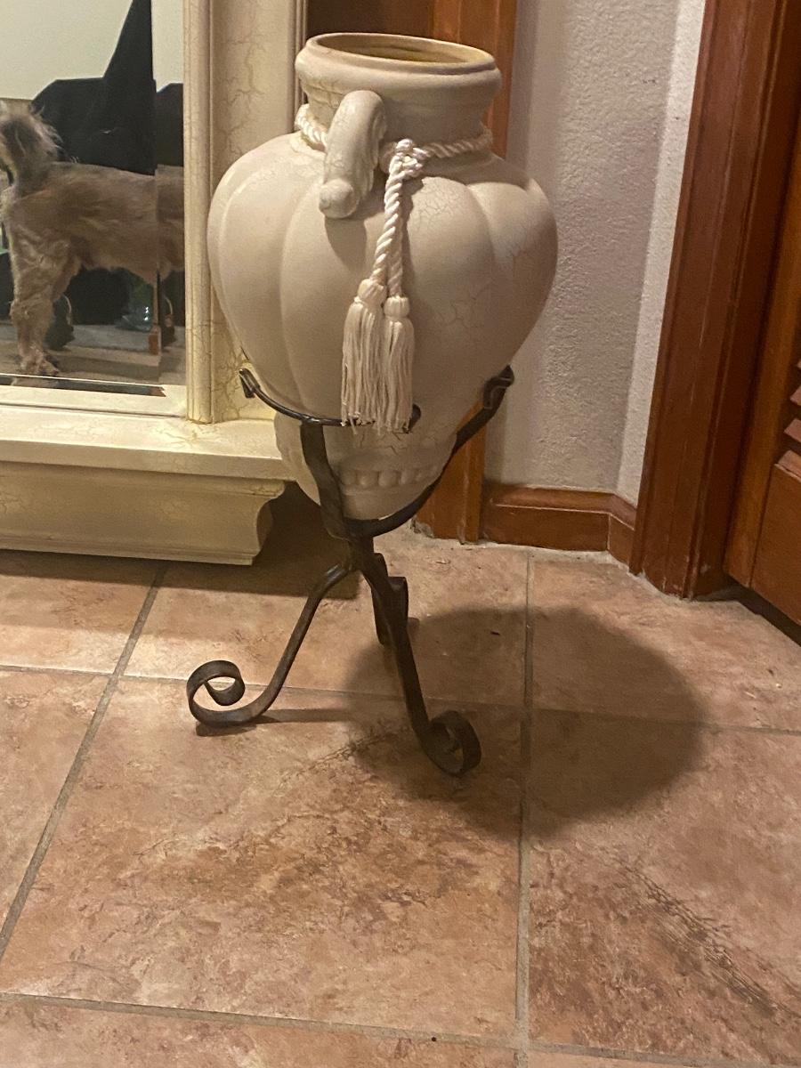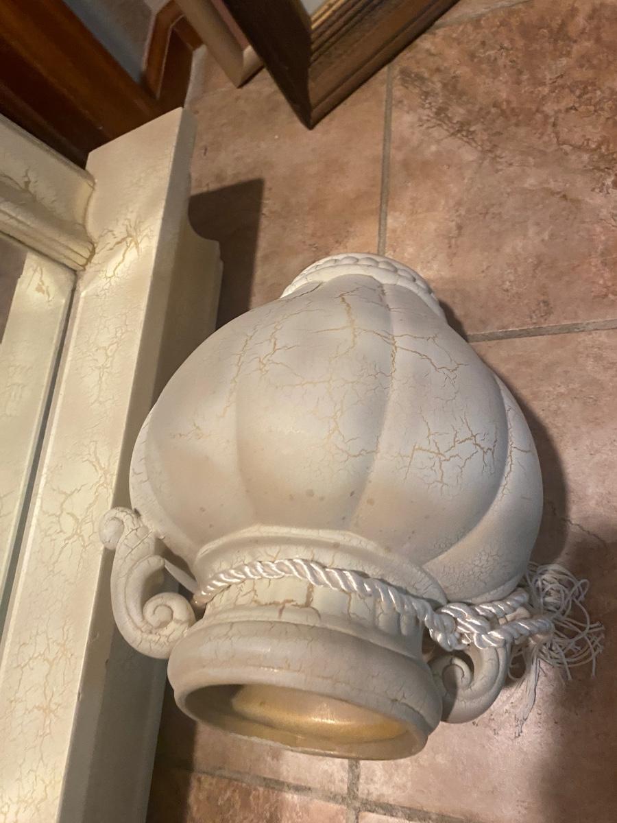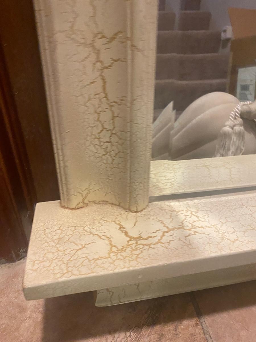 CREAM COLORED ANTIQUED MIRROR AND POT
