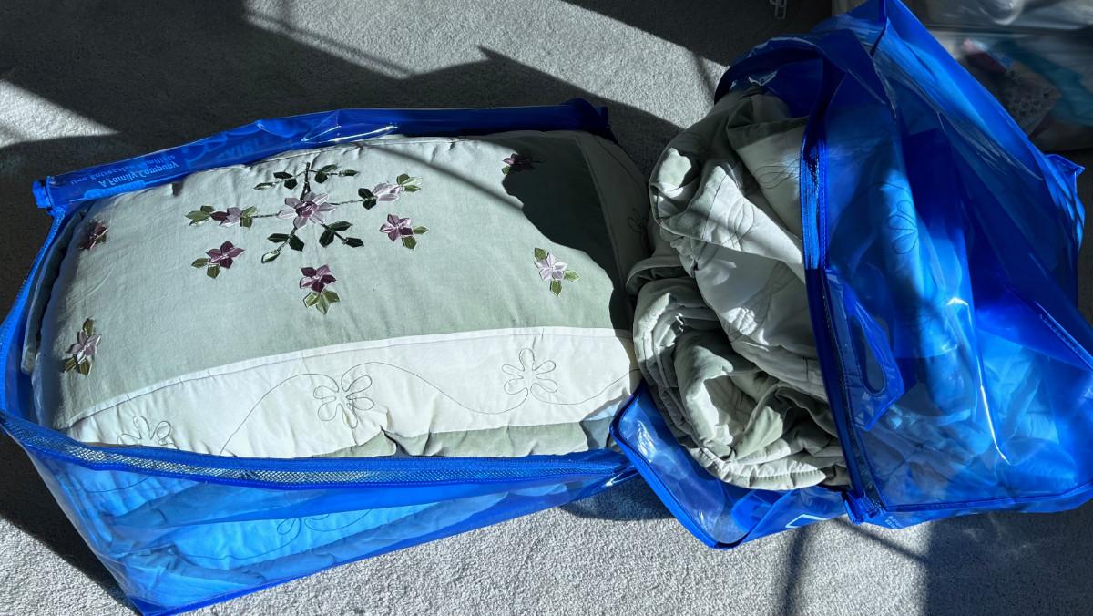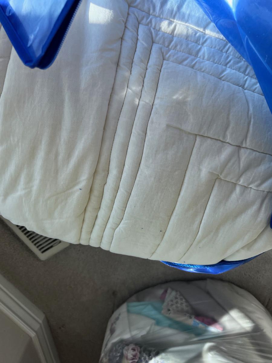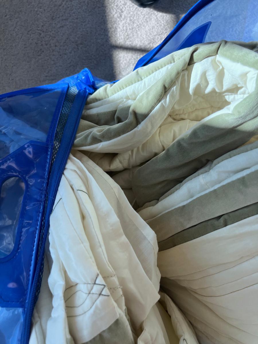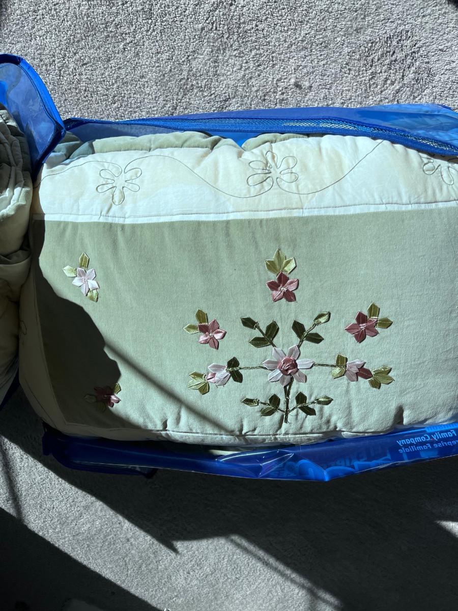 Cream & Green Velvet King Set of Comforter & Pillows in Blue Plastic