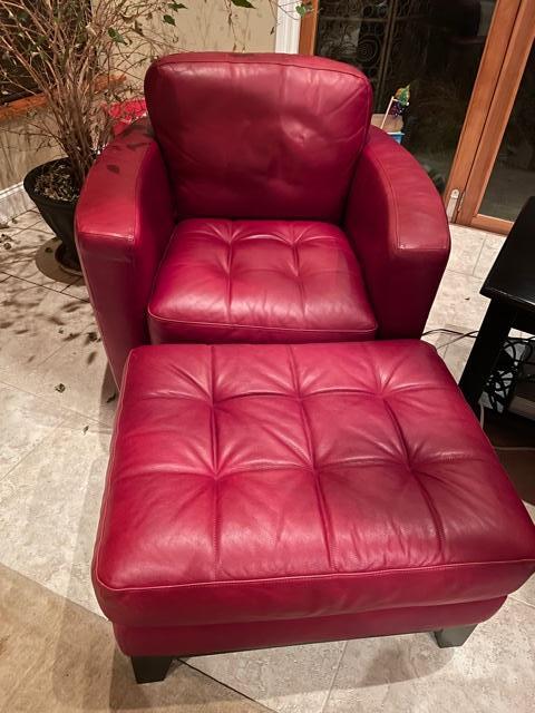 Natuzzi Red Leather Armchair w/Ottoman #1
