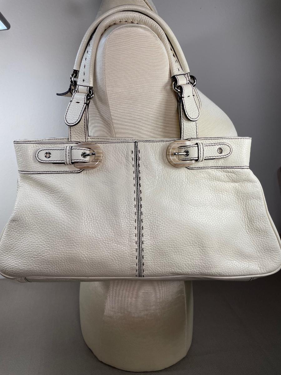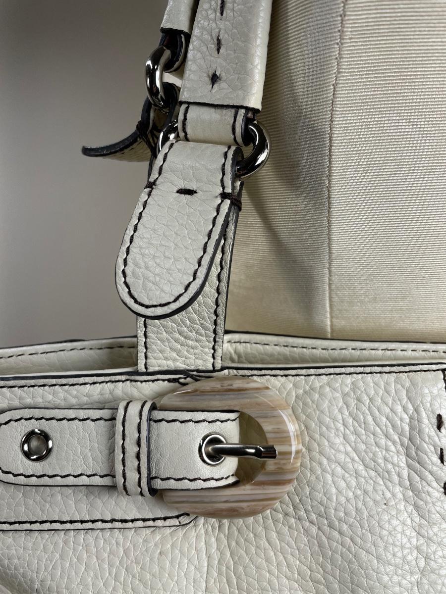Cream Pebble Leather Adrienne Vittadini Handbag