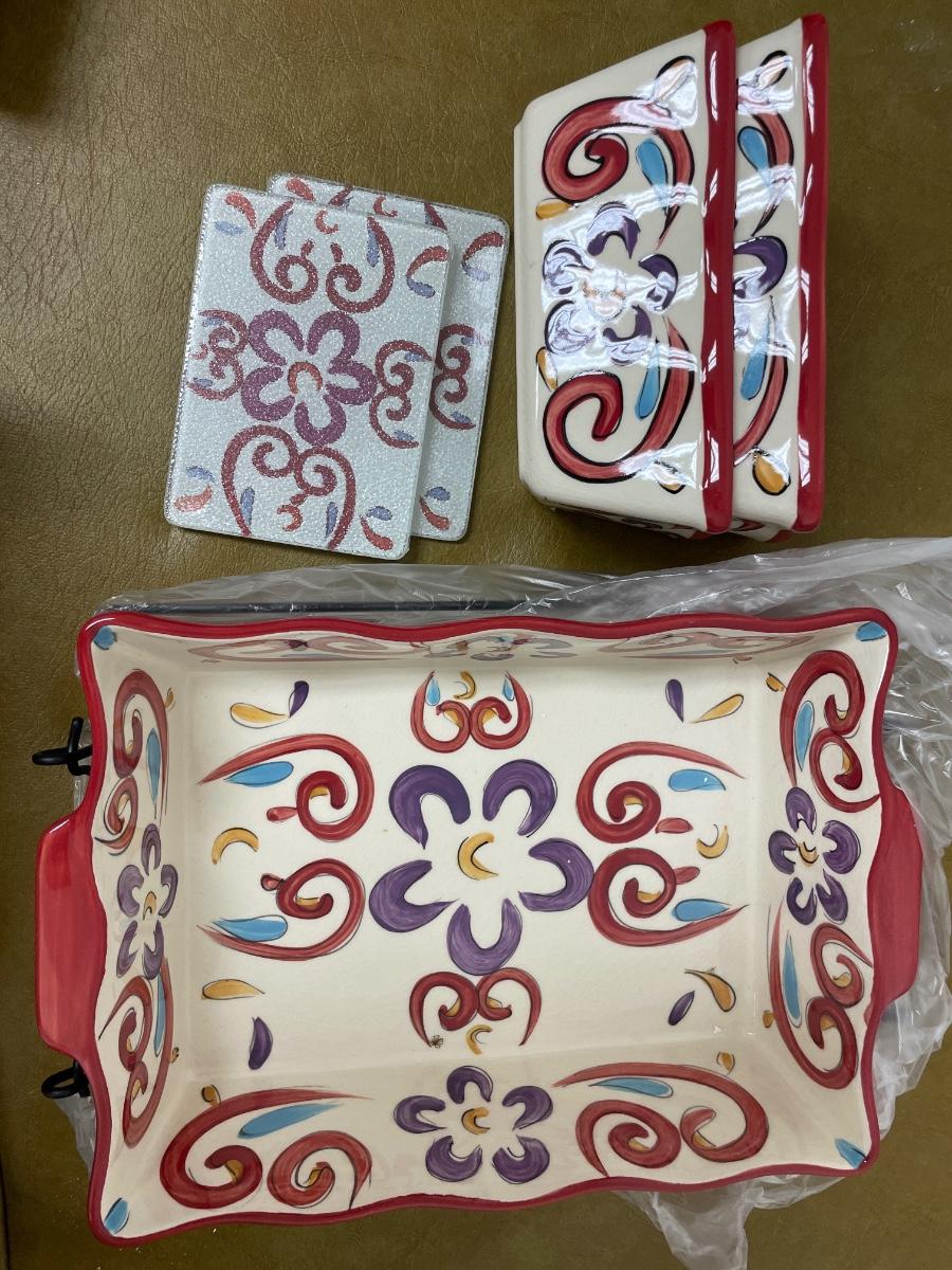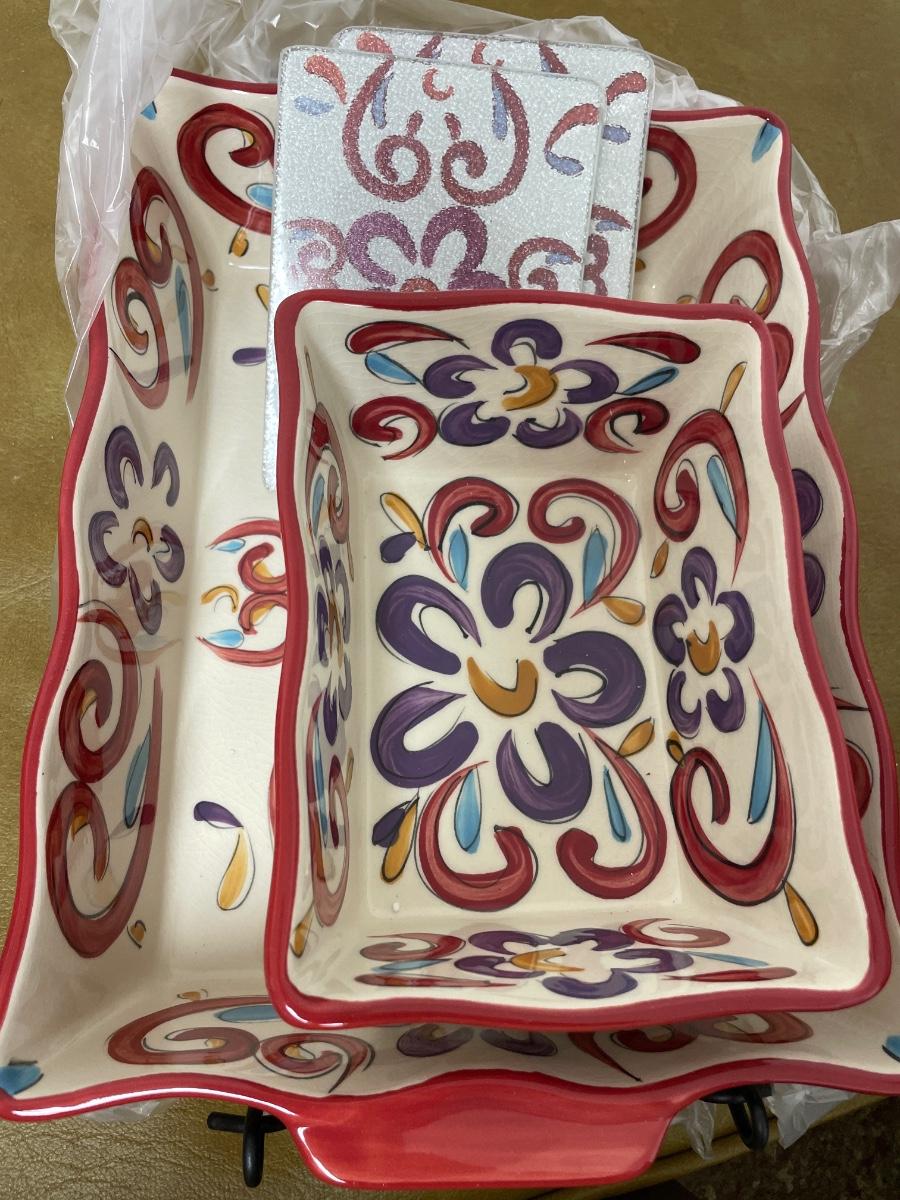 Fun set of temp-tations large ovenware and 2 smaller with trivets