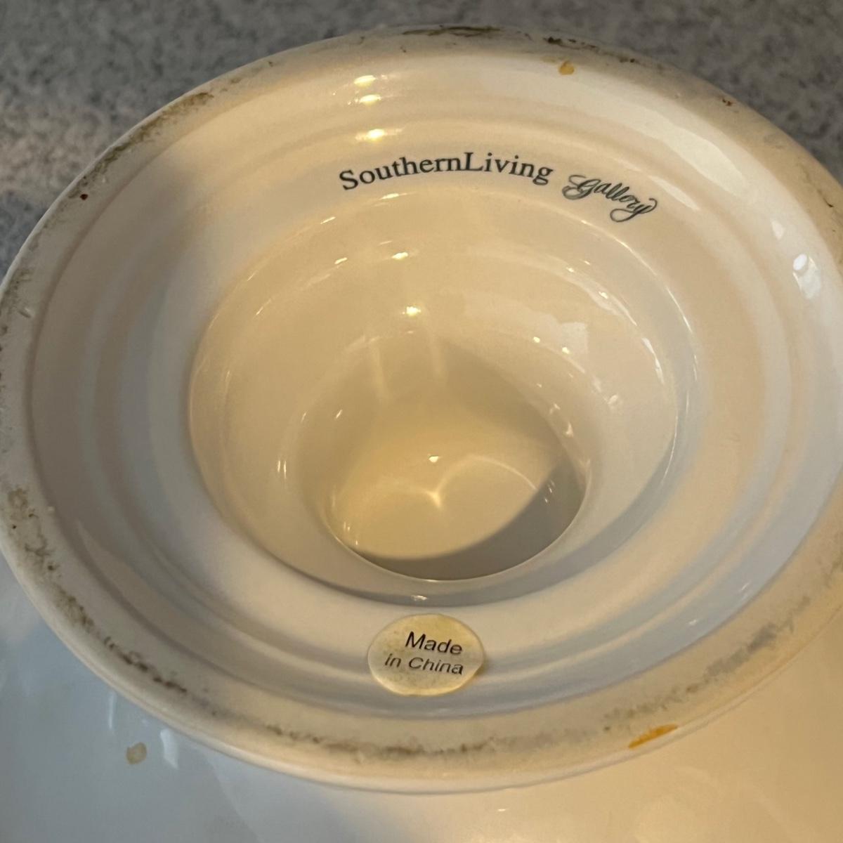 Southern Living, Marimekko and more are found in this lot of nine pieces of ceramic serving ware. The largest platter has some cutlery marks.
