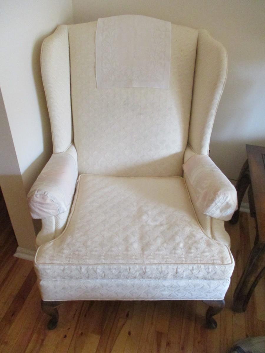Cream Wing Back Chair - There are a set of stairs out of the house and down the front landing