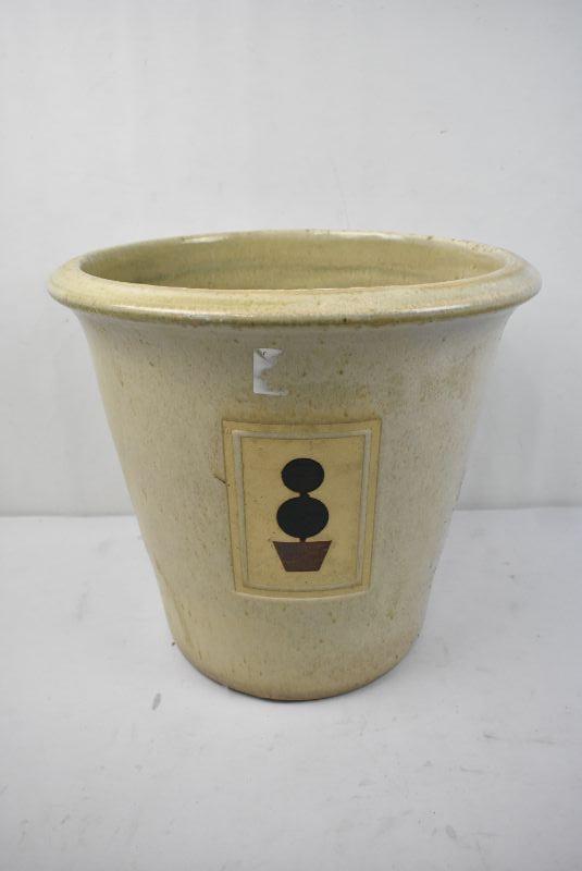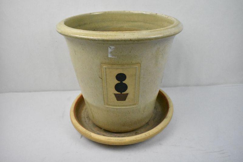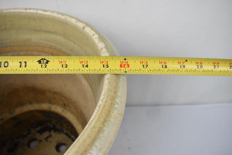 Cream with Brown Speckles Planter with Base, Planter Size is 15" x 16" and Base Size is 16.5" x 2.5"