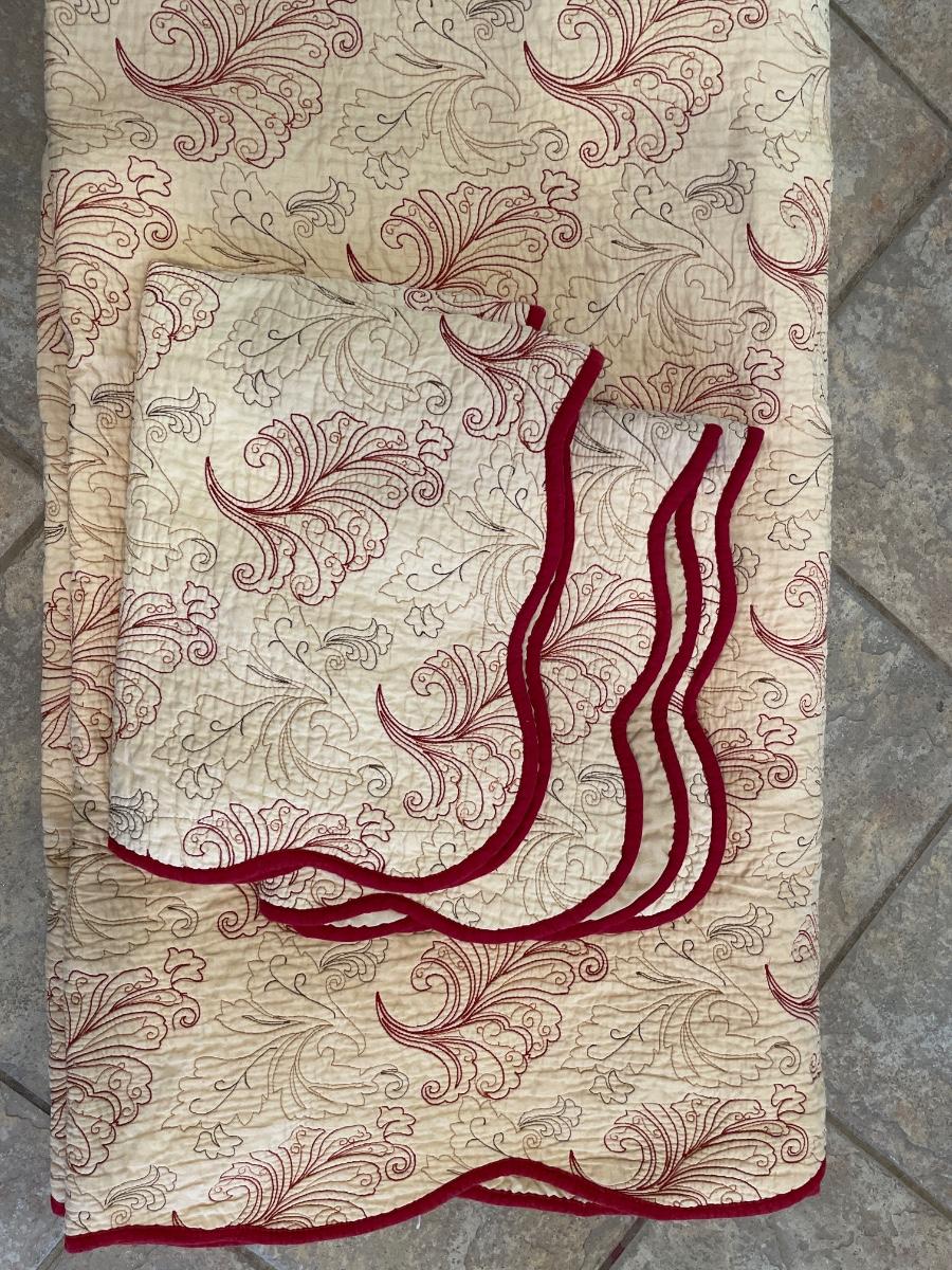 Cream with red trim bed spread & 2 shams