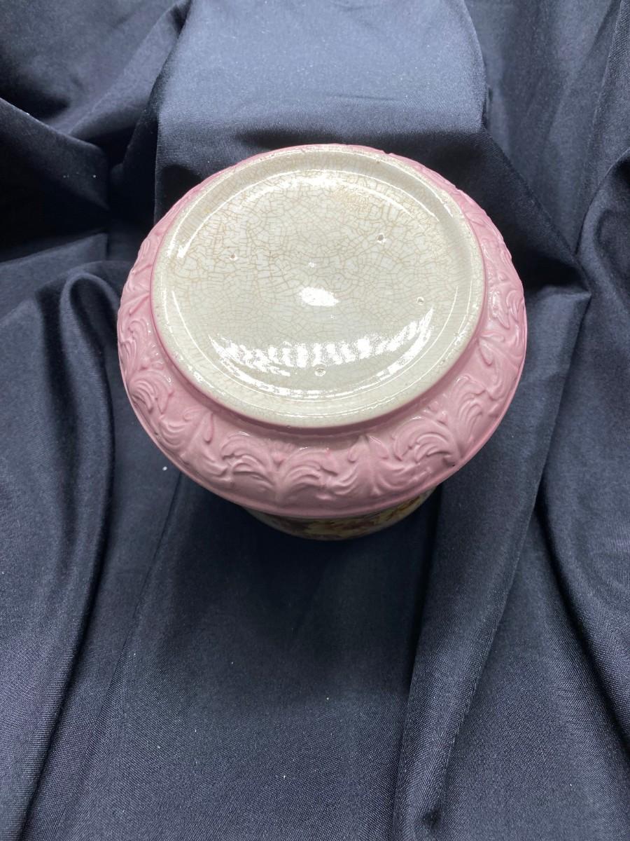 Vintage Floral with pink accents, brass lis and handle
