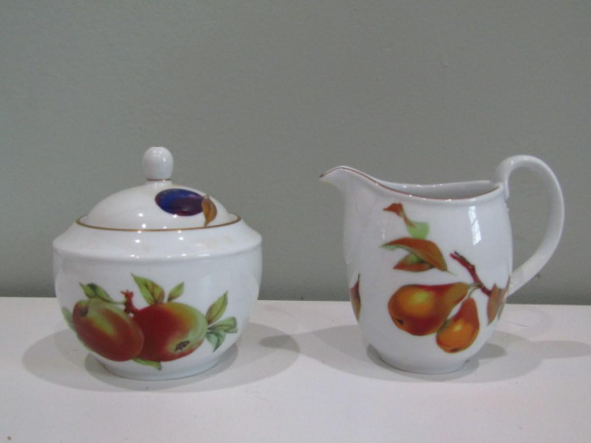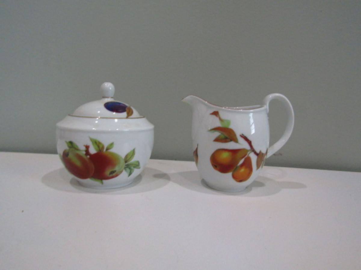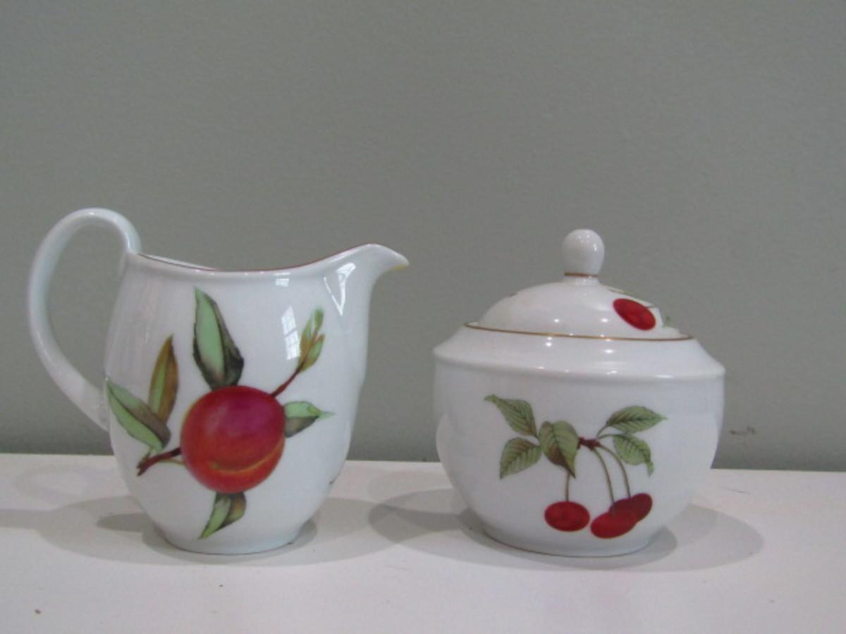 Creamer and Lidded Sugar Bowl by Royal Worcester- Evesham Pattern (DR)