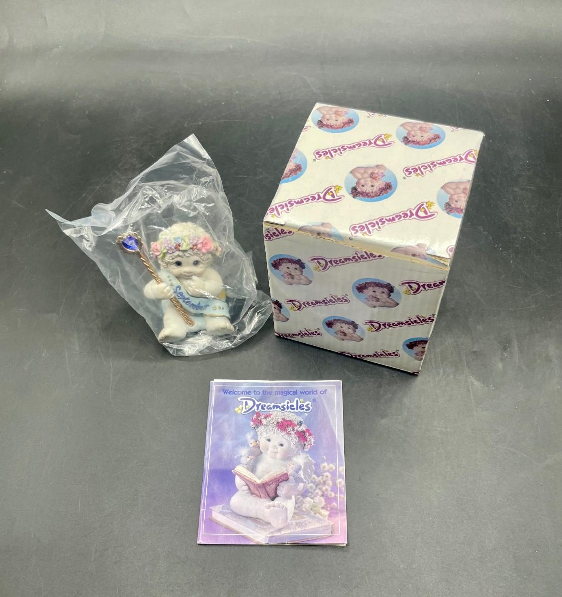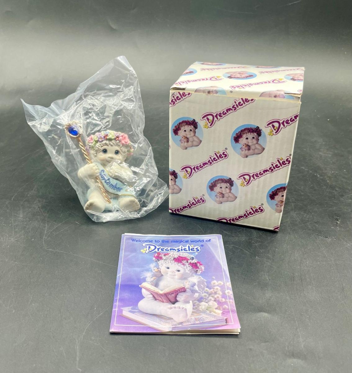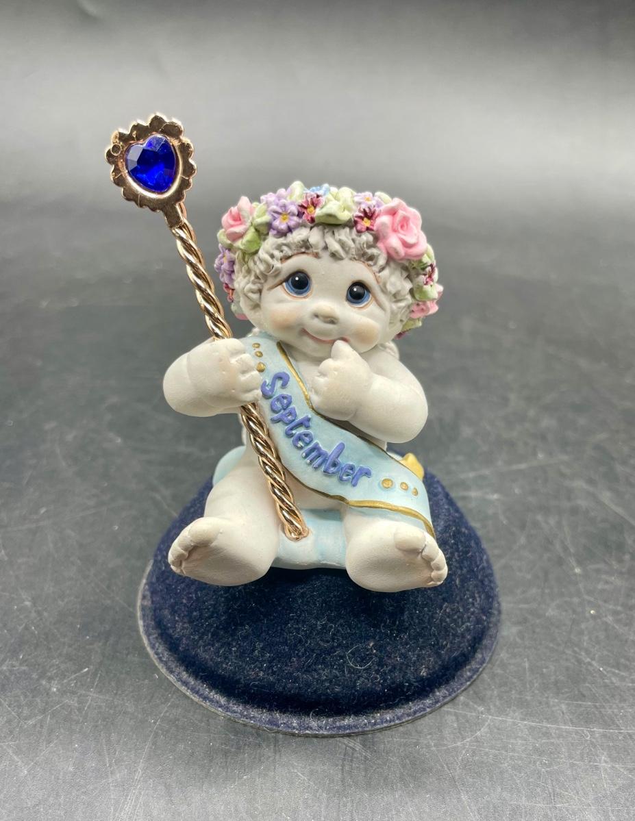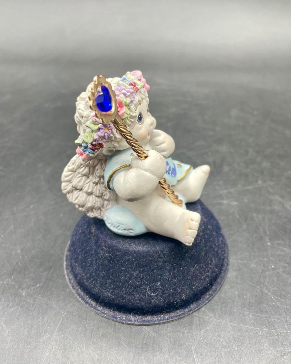 Blue Sapphire with figurine. Like new condition, approx. 4" tall. By Cast Art Industries.