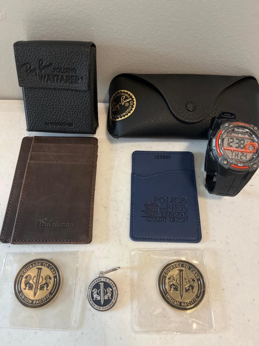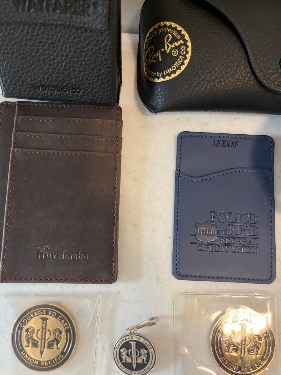 Credit card wallets, Watch, Ray-Ban cases and tokens