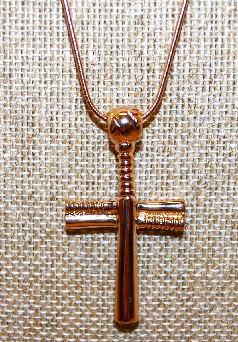 Cremation Ashes Memorial Rose Gold Cross PENDANT (2" x 1") on a Rose Gold Necklace Chain 22" L
