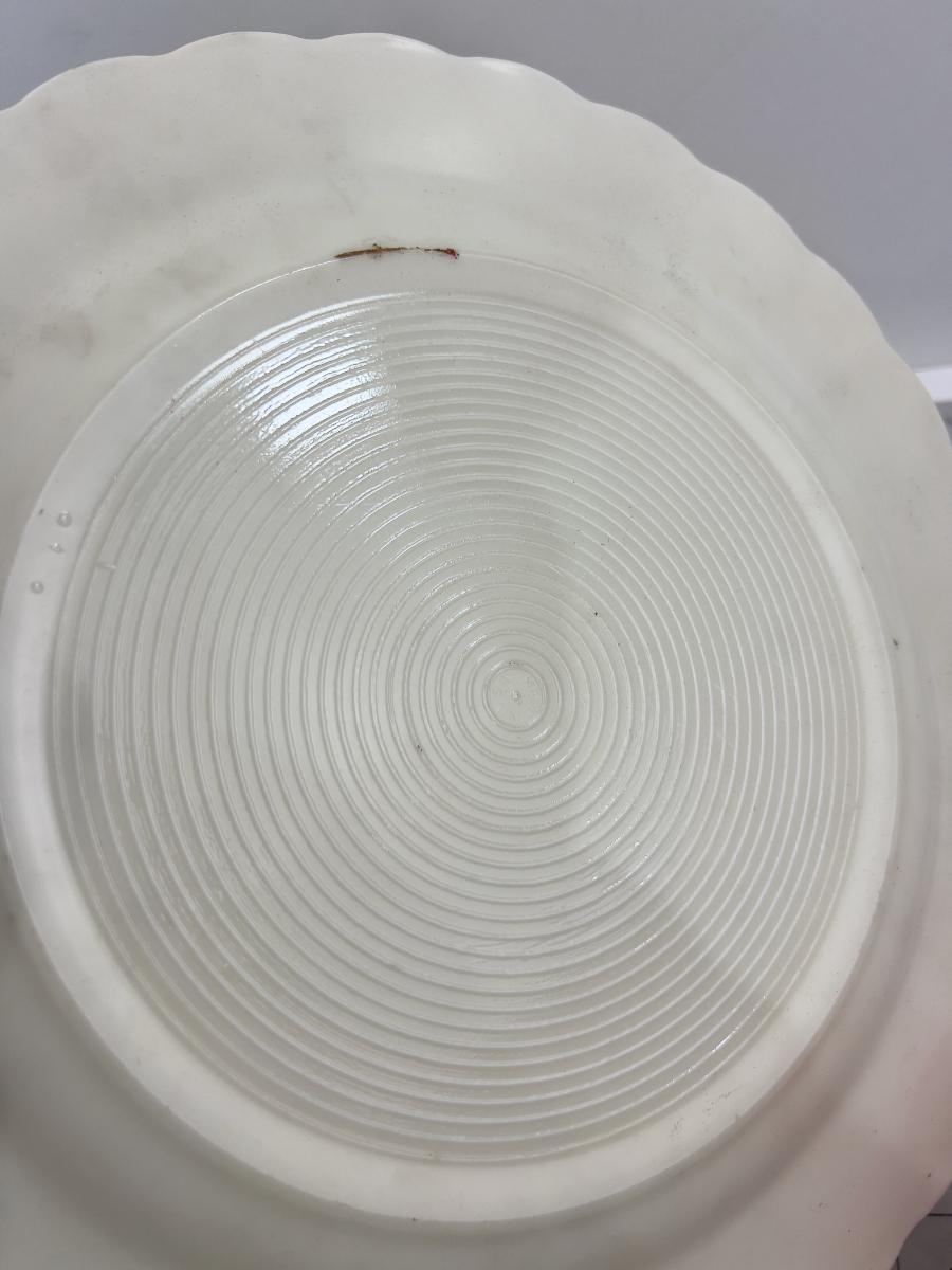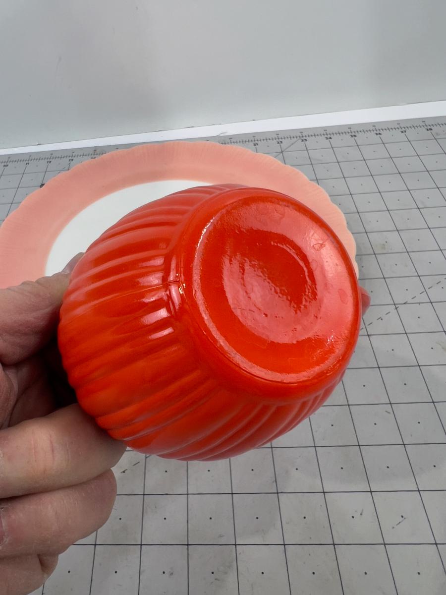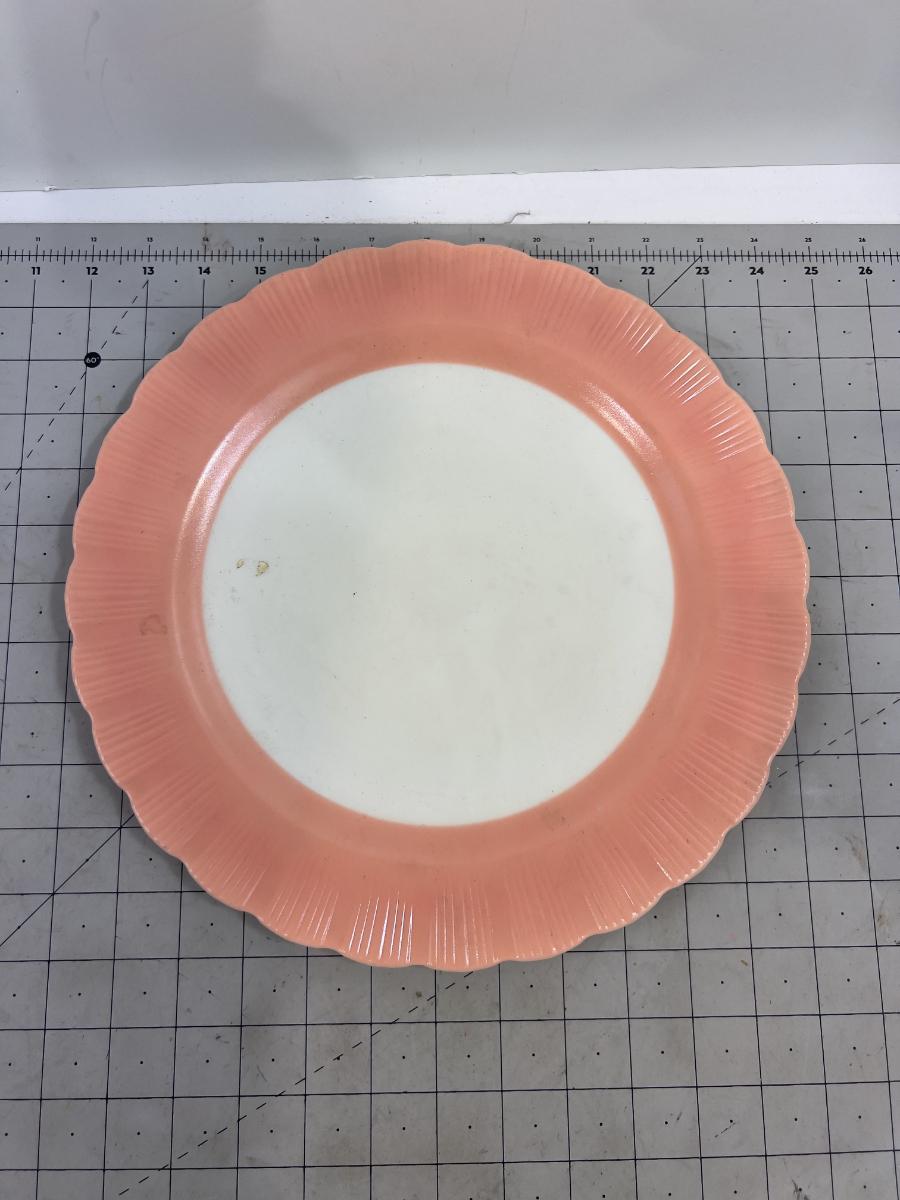 Cremaz Glass Pink and White Platter Plus Hazel Atlas Orange and White Pitcher
