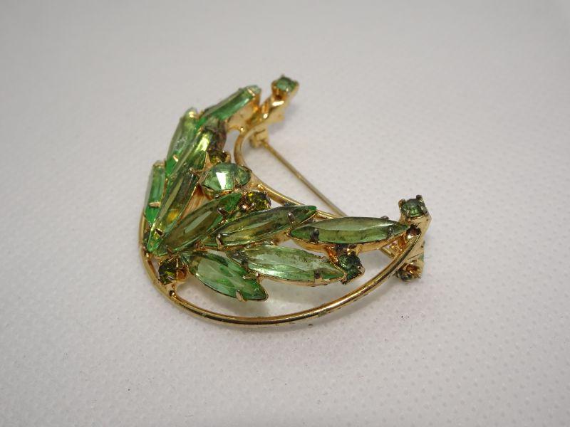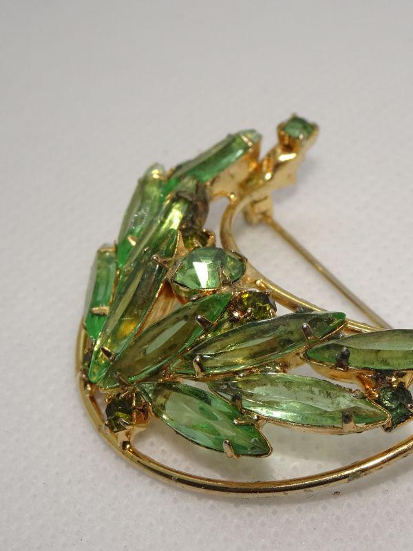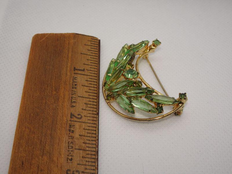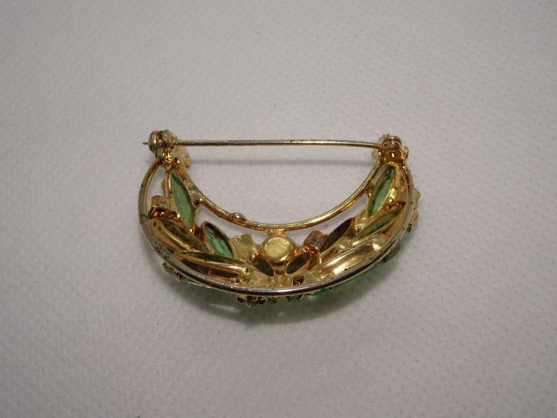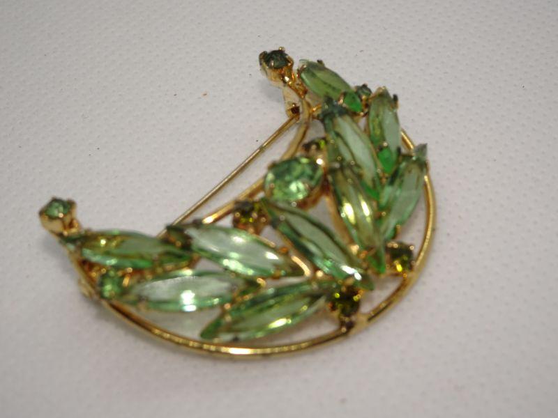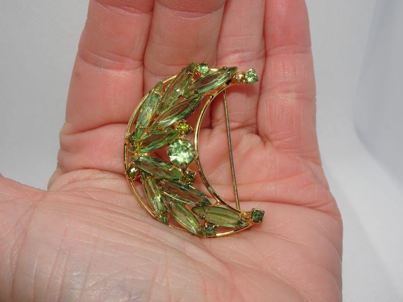 Crescent Moon Green Rhinestone Gold Tone Pendant, Beautiful Green Stones