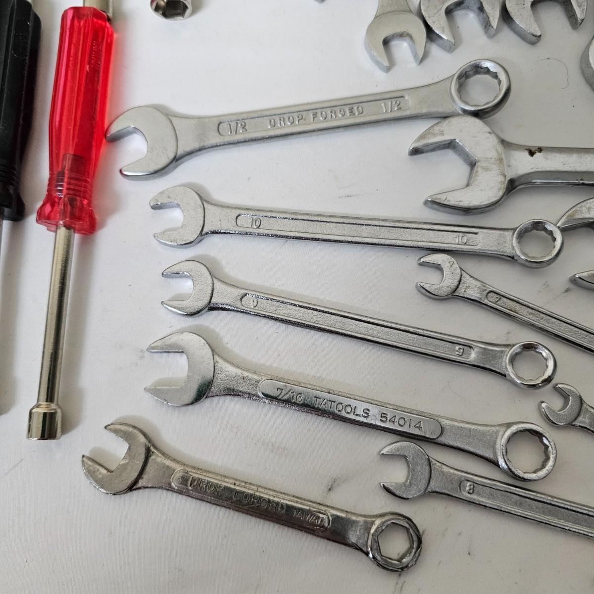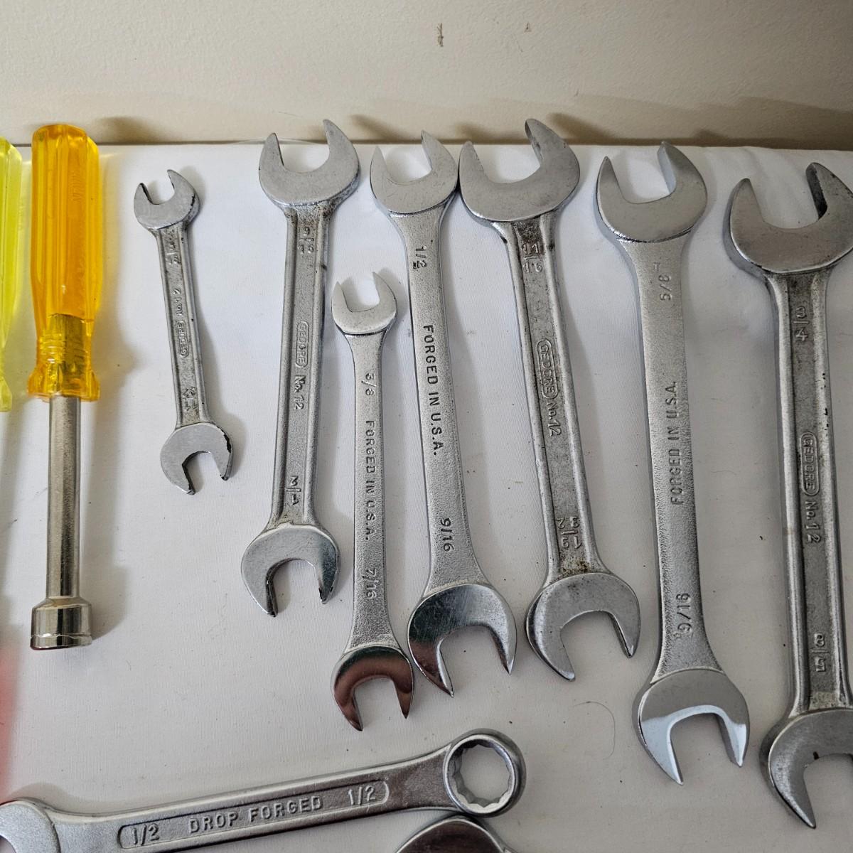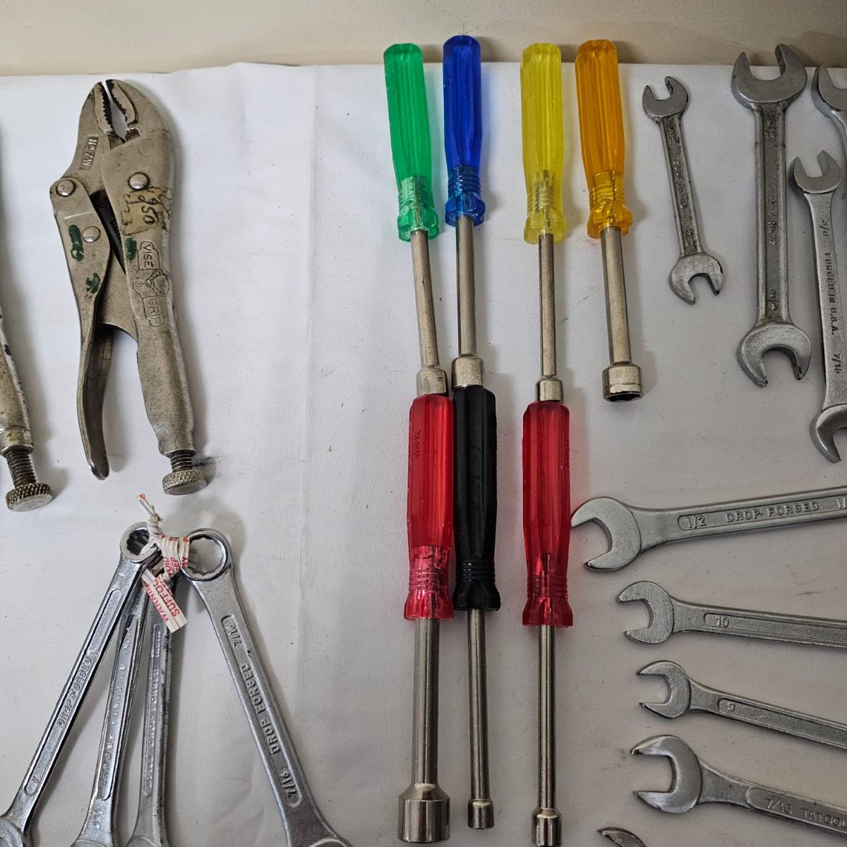 Name brand, hard tested hand tools for all types of jobs. Crescent wrenches run from 6" to 10". Large ViseGrip is 9". Several different makes of wrenches, open end and box end combos. Small set of handled nut drivers. All items used, see photos for details. Local pickup only.