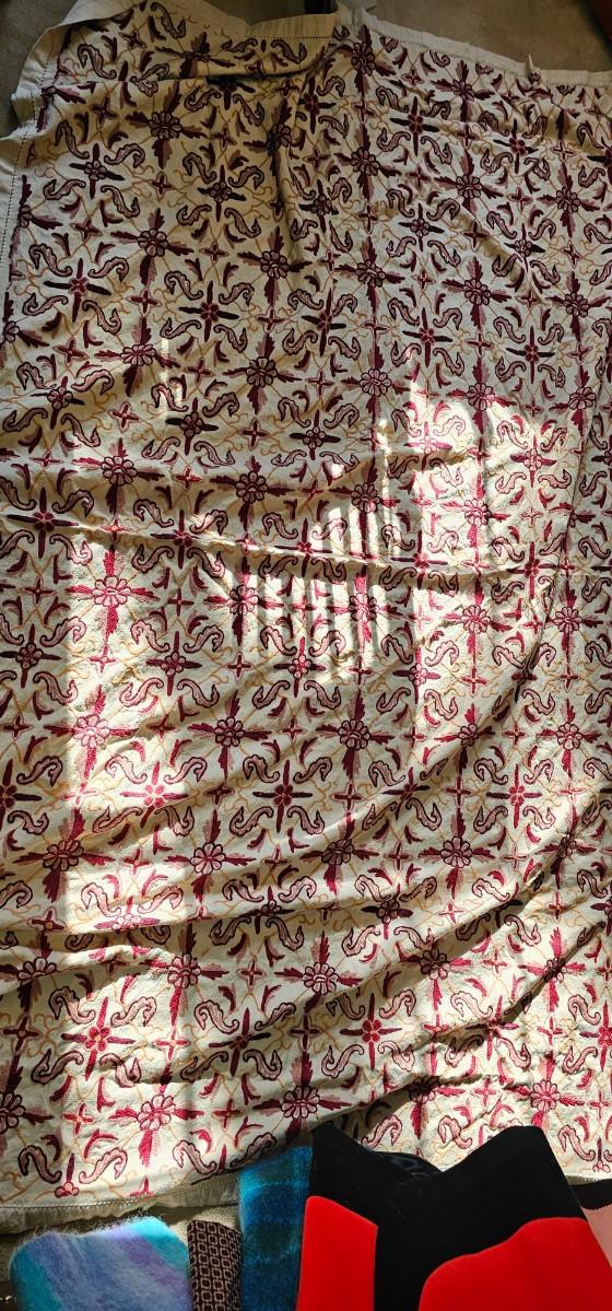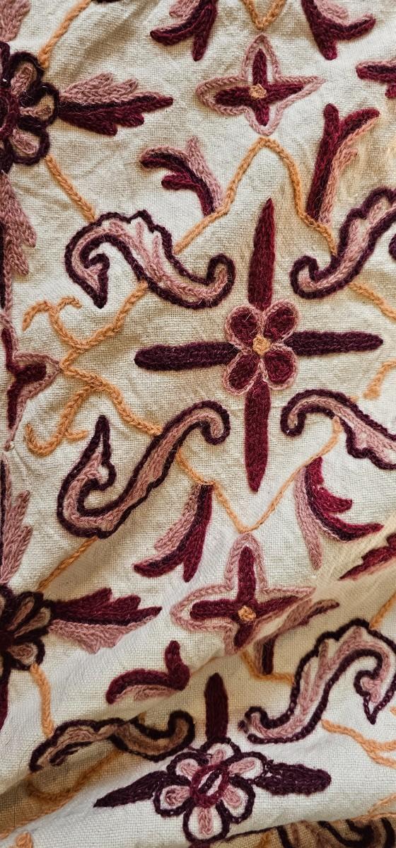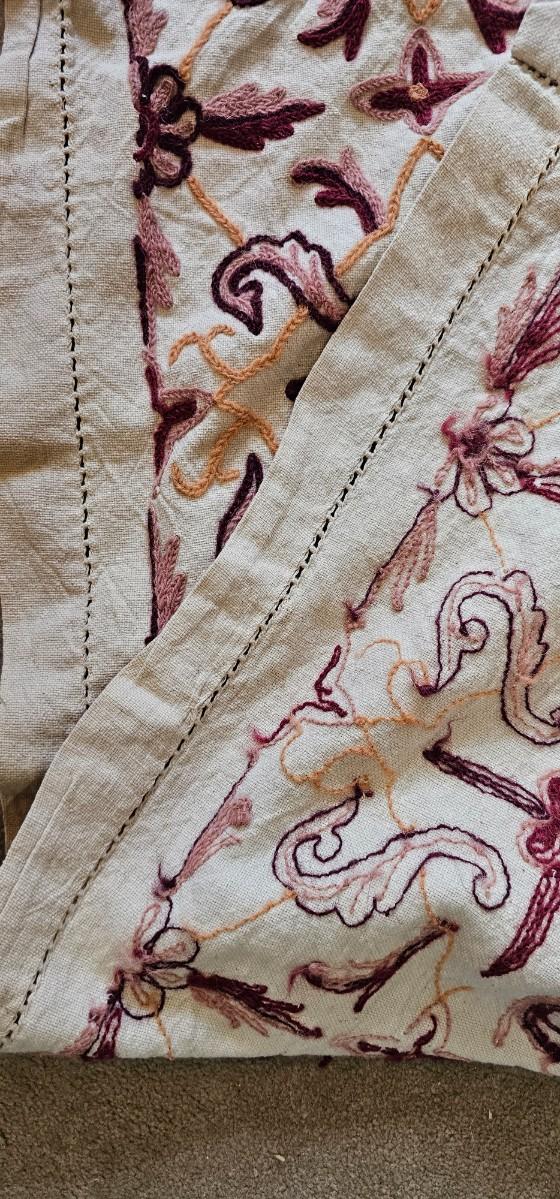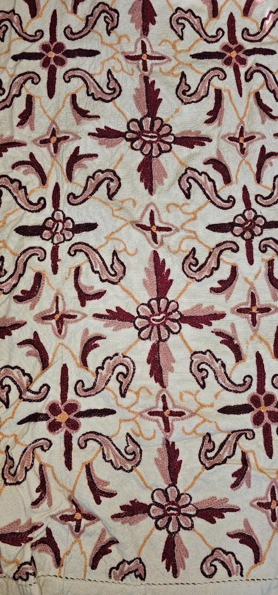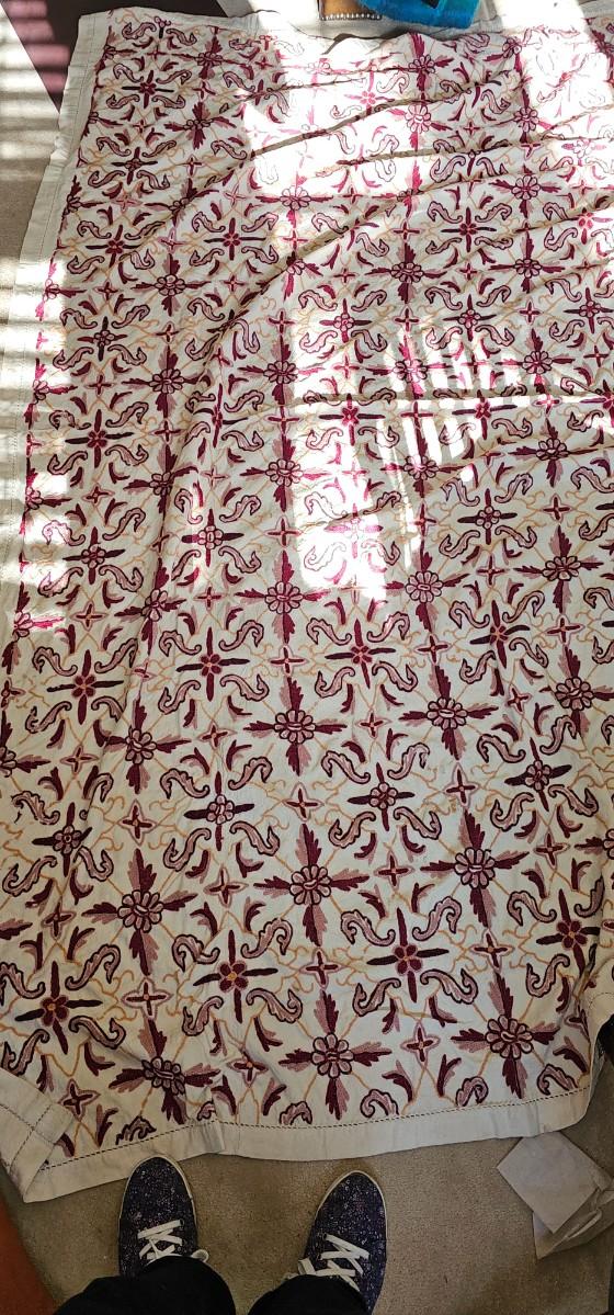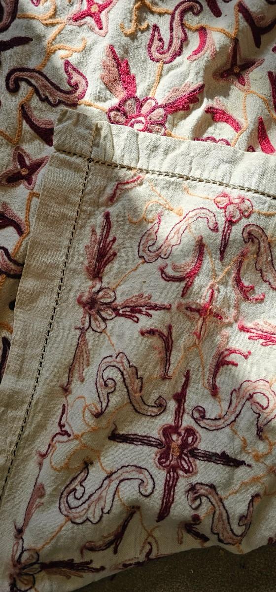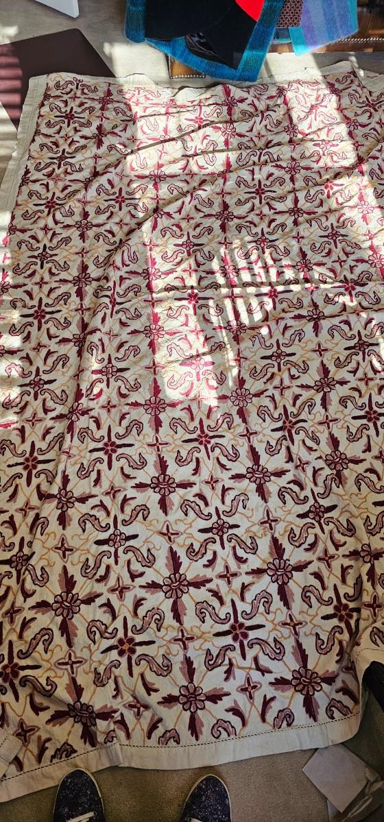 Crewel embroidered coverlet