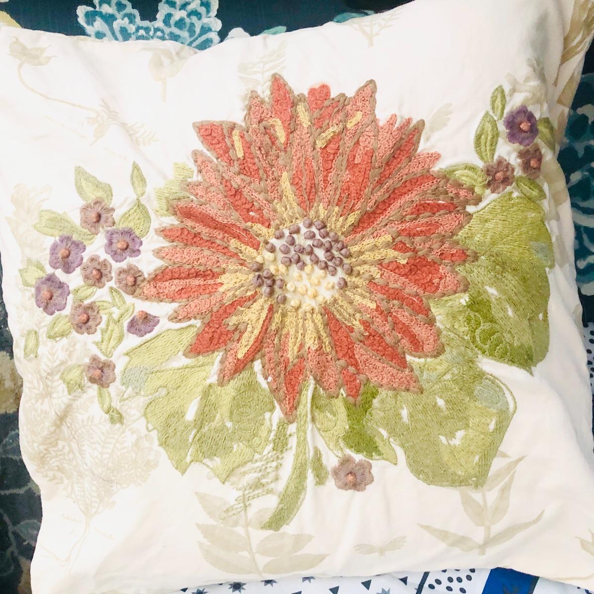 Made by Pottery Barn, this neat pillow has embroidered detail on both sides. 16x16.