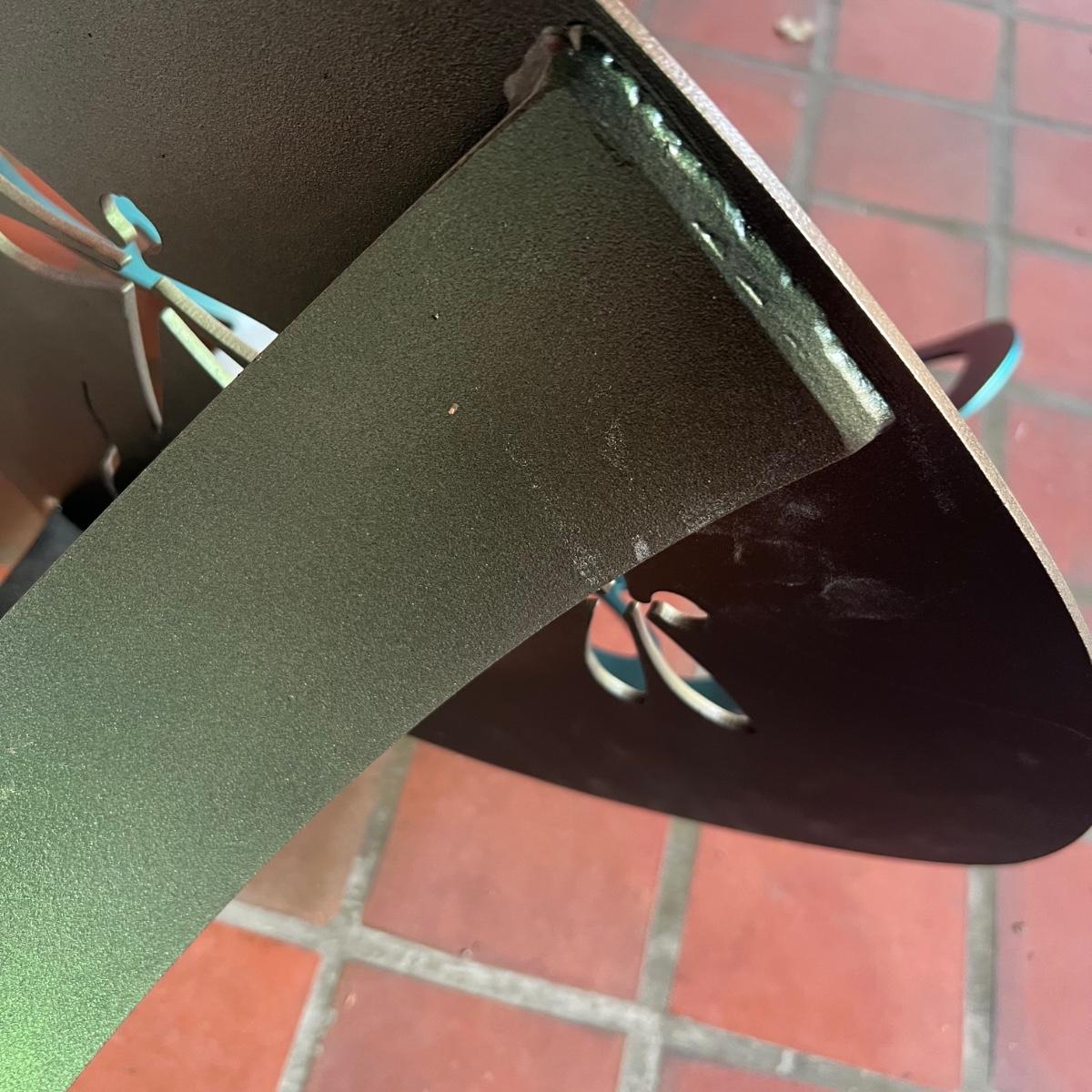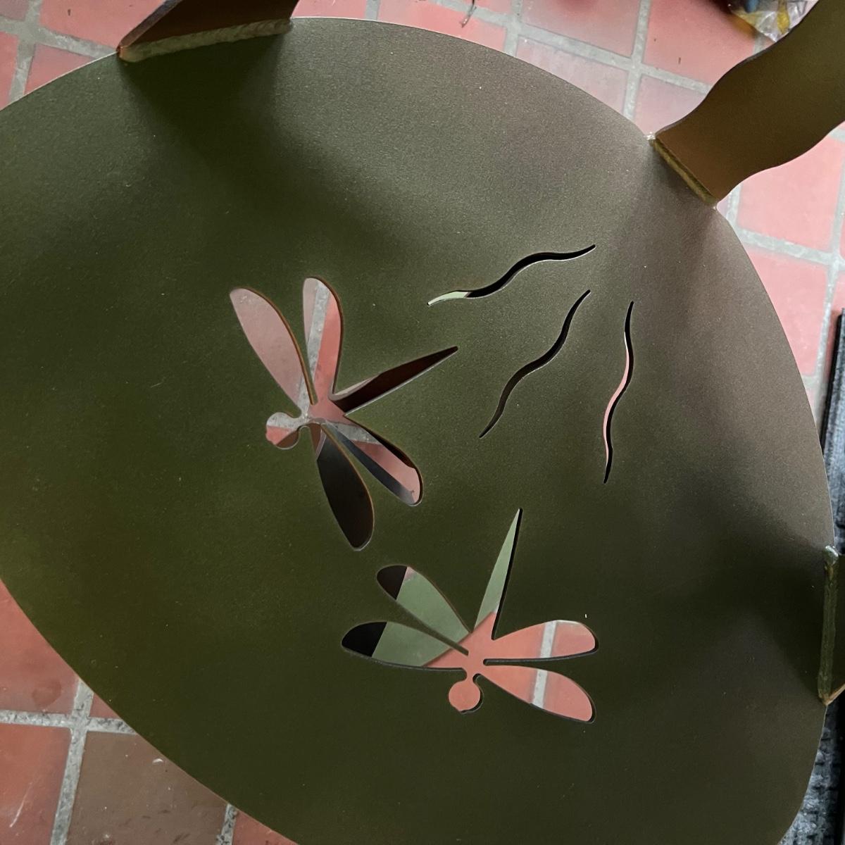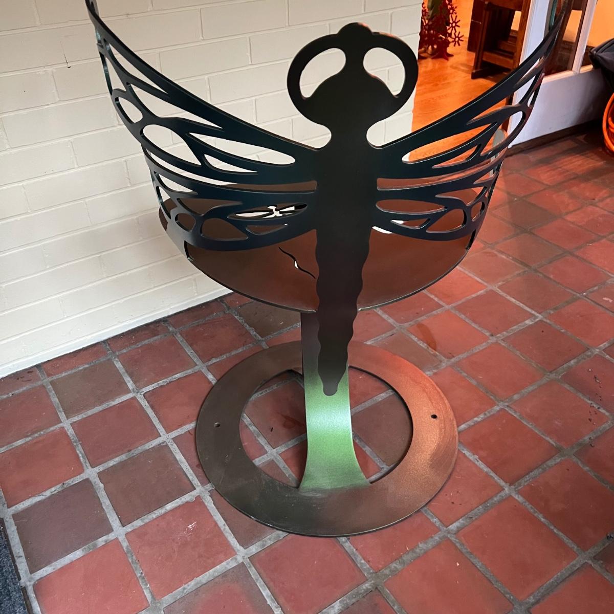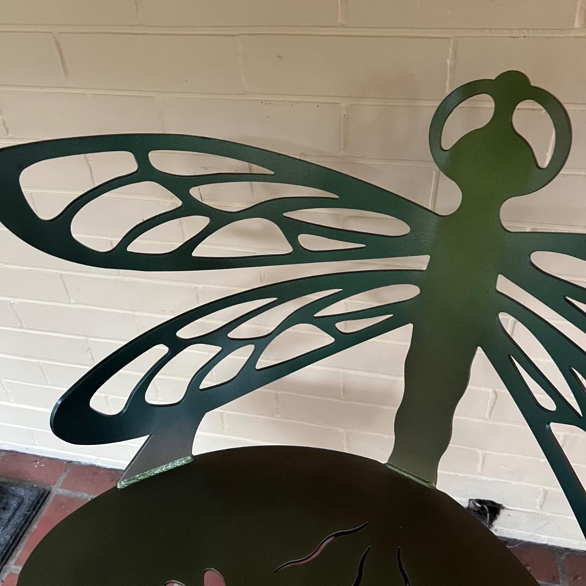 This stunning dragonfly chair could be staged indoors or outside but it appears to have been kept indoors as it is very clean. Made of steel it has a slight spring to the seat for a gentle rocking motion.