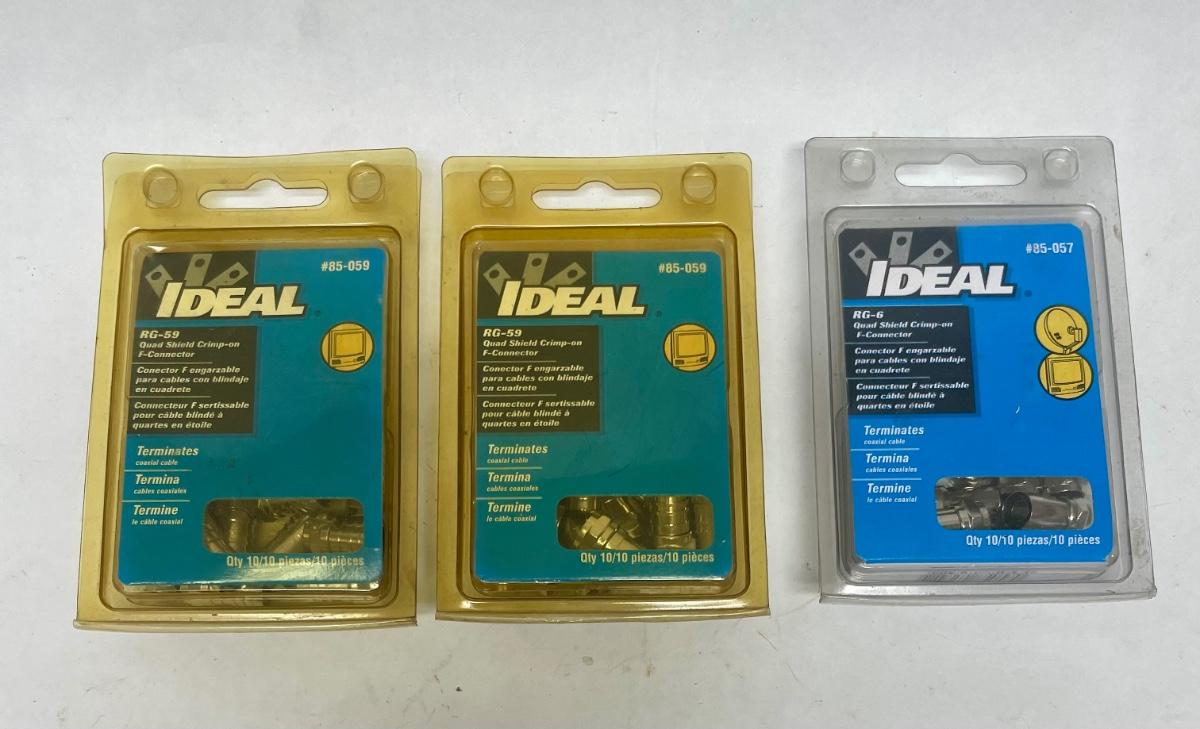 Packages of new RG-6 and RG-59 Quad Shield Crimp-on connectors. Also a near-new crimping tool.